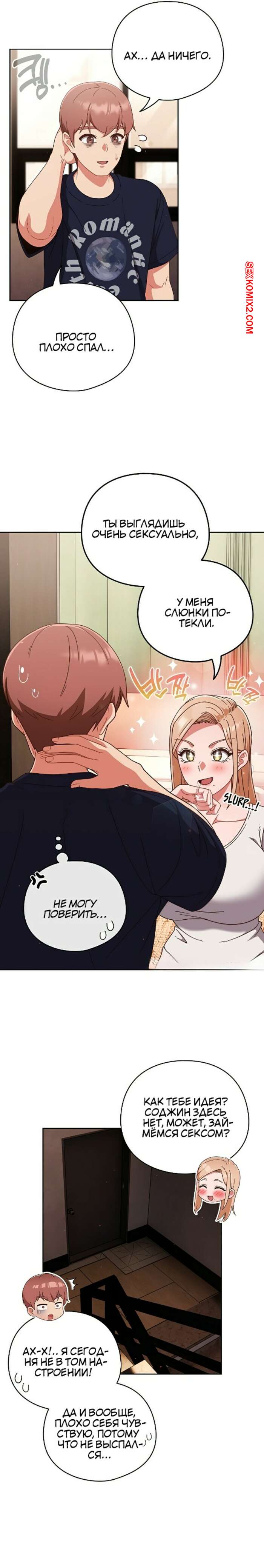 Порно комикс Сладкая подработка. Часть 24 и 25 и 26. honey dripping part time job Горячая брюнетка была очень возбуждена и решила повеселиться со своим спящим дружком. Девушка стала сосать большой хуй парня и помогла ему быстро кончить.