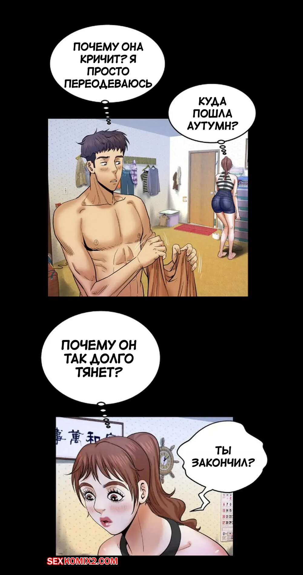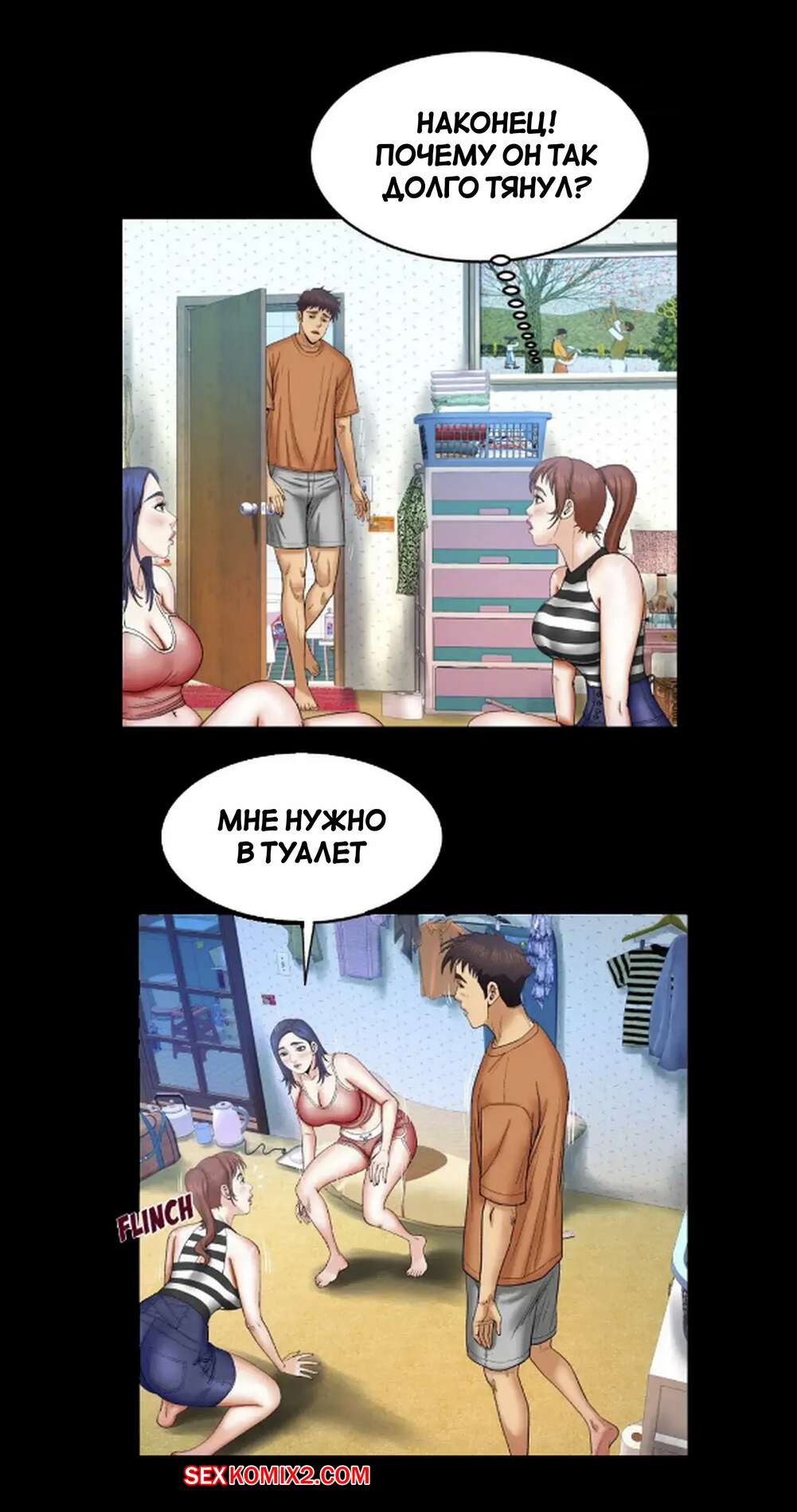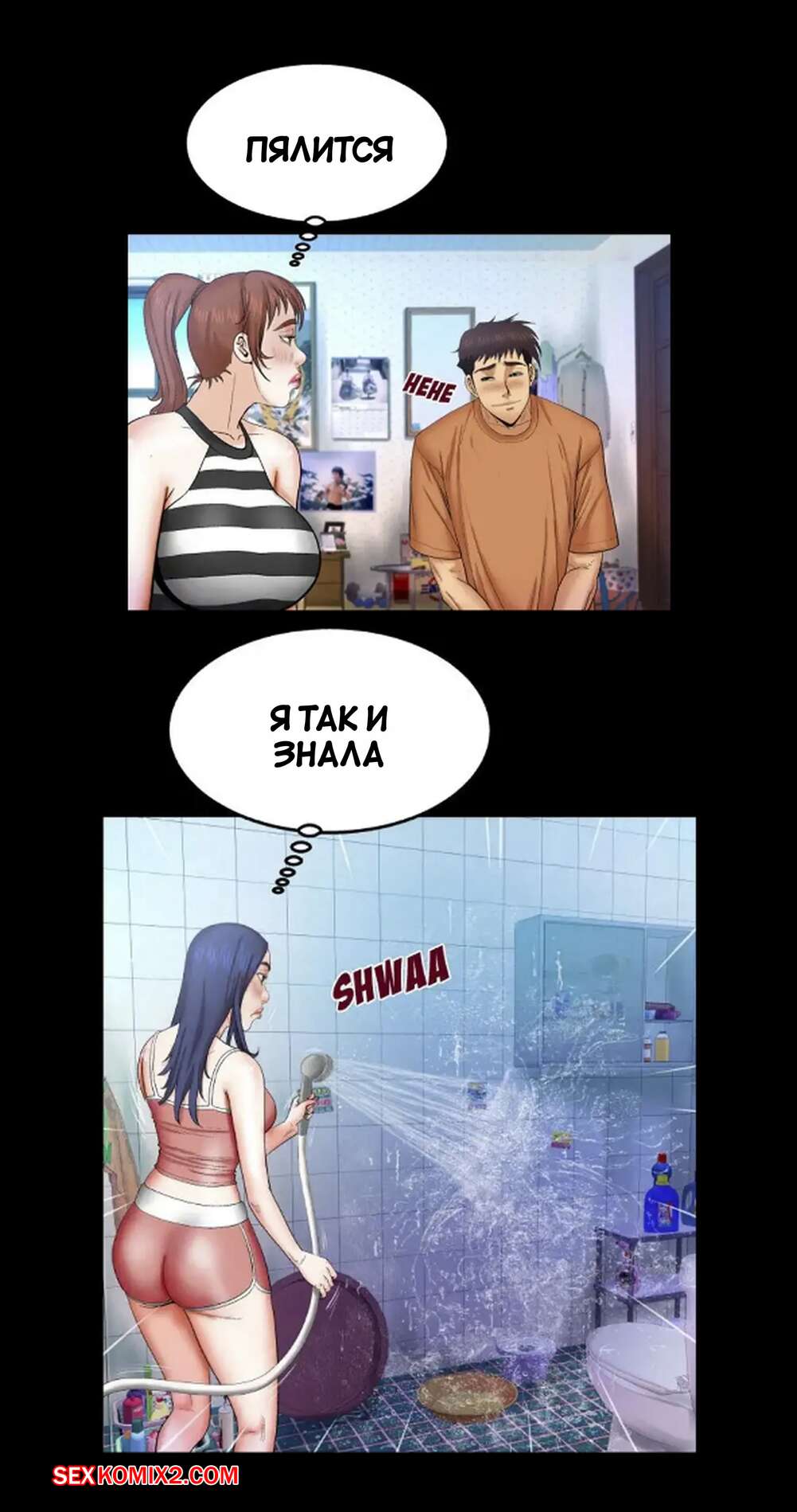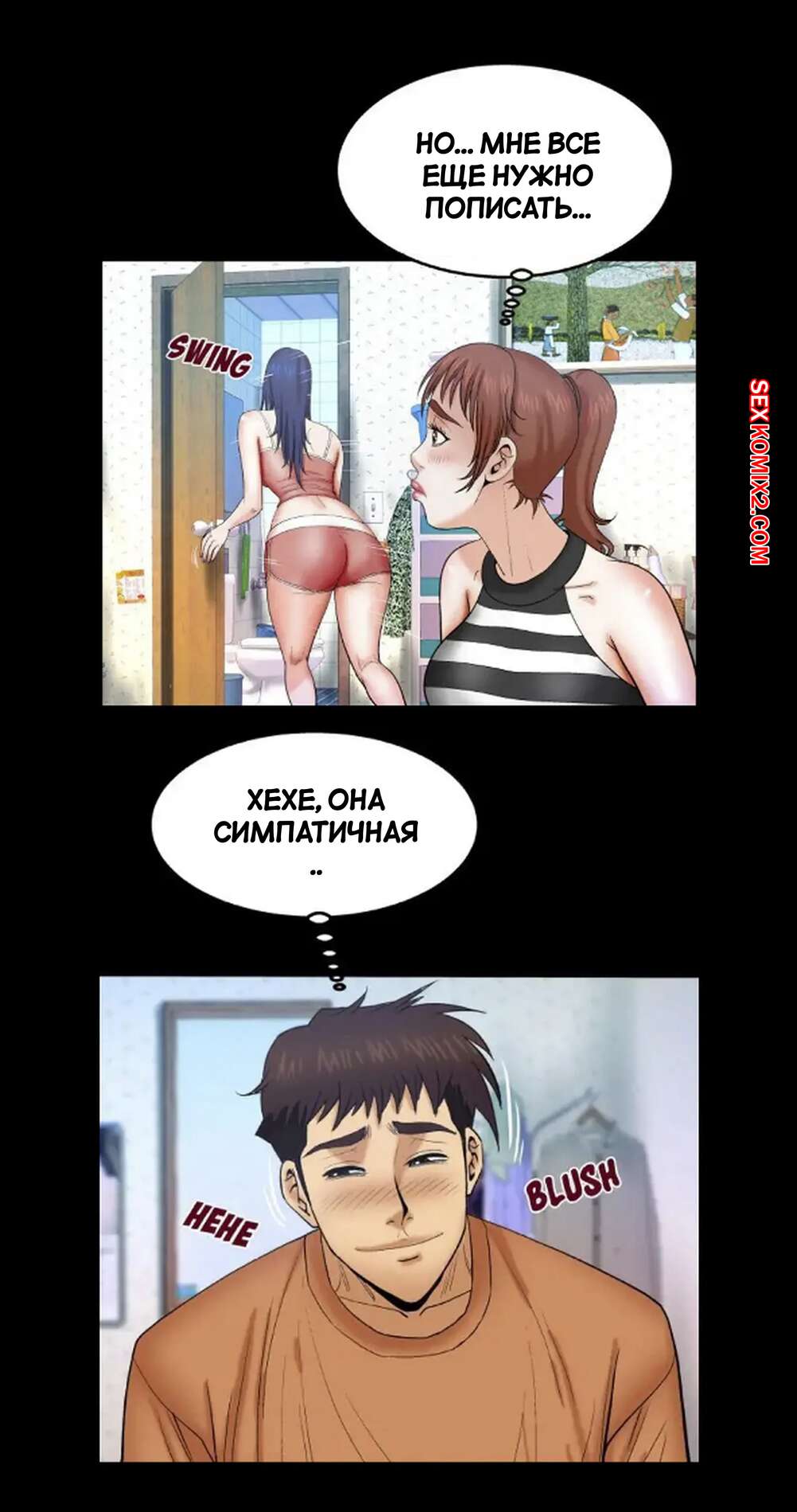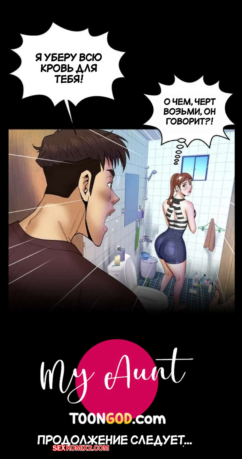 Порно комикс Моя тетя. Без цензуры. Часть 25. My Aunt. Toomics Девушка с трудом дождалась, когда парень выйдет из ванной, и сама побежала туда. Красотки долго не было, поэтому парень пошел туда к ней, чтобы узнать в чем дело.
