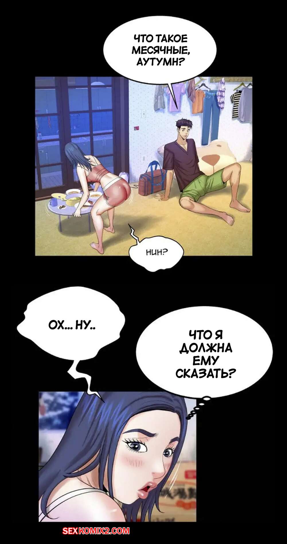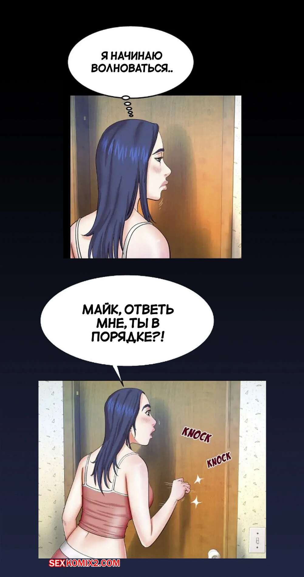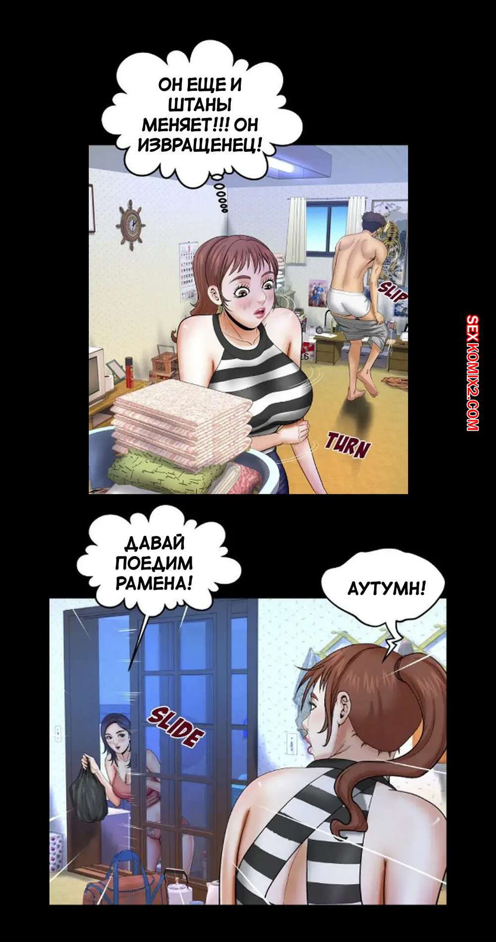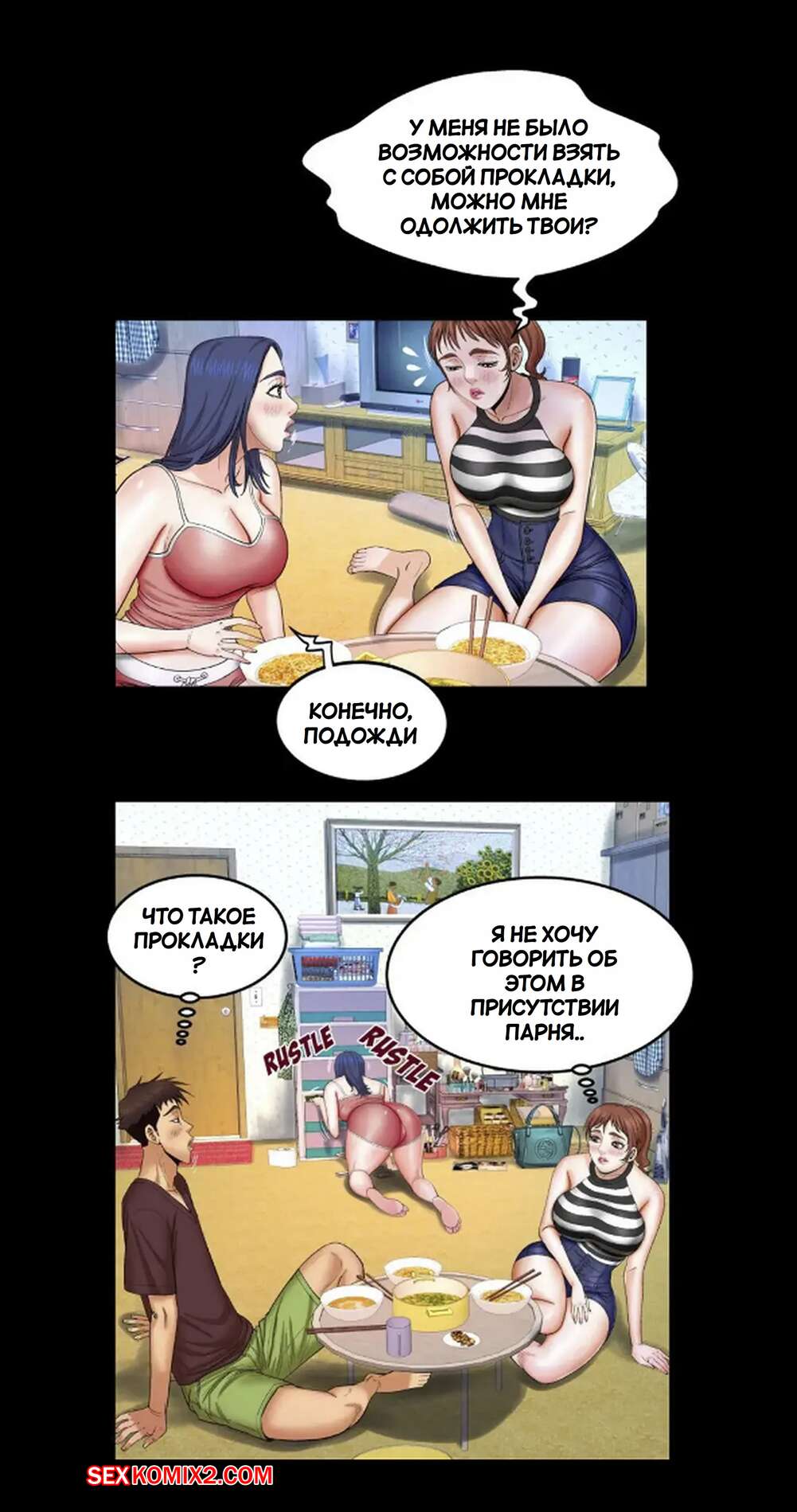 Порно комикс Моя тетя. Без цензуры. Часть 25. My Aunt. Toomics Девушка с трудом дождалась, когда парень выйдет из ванной, и сама побежала туда. Красотки долго не было, поэтому парень пошел туда к ней, чтобы узнать в чем дело.