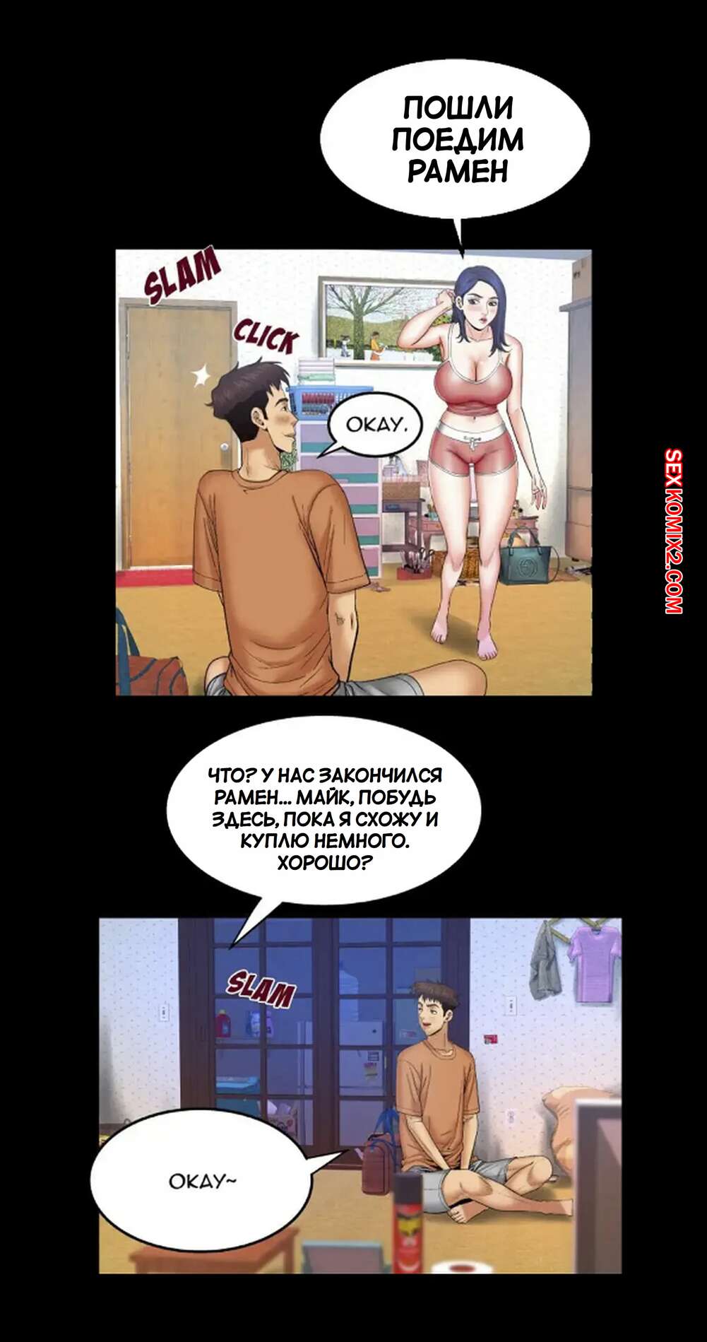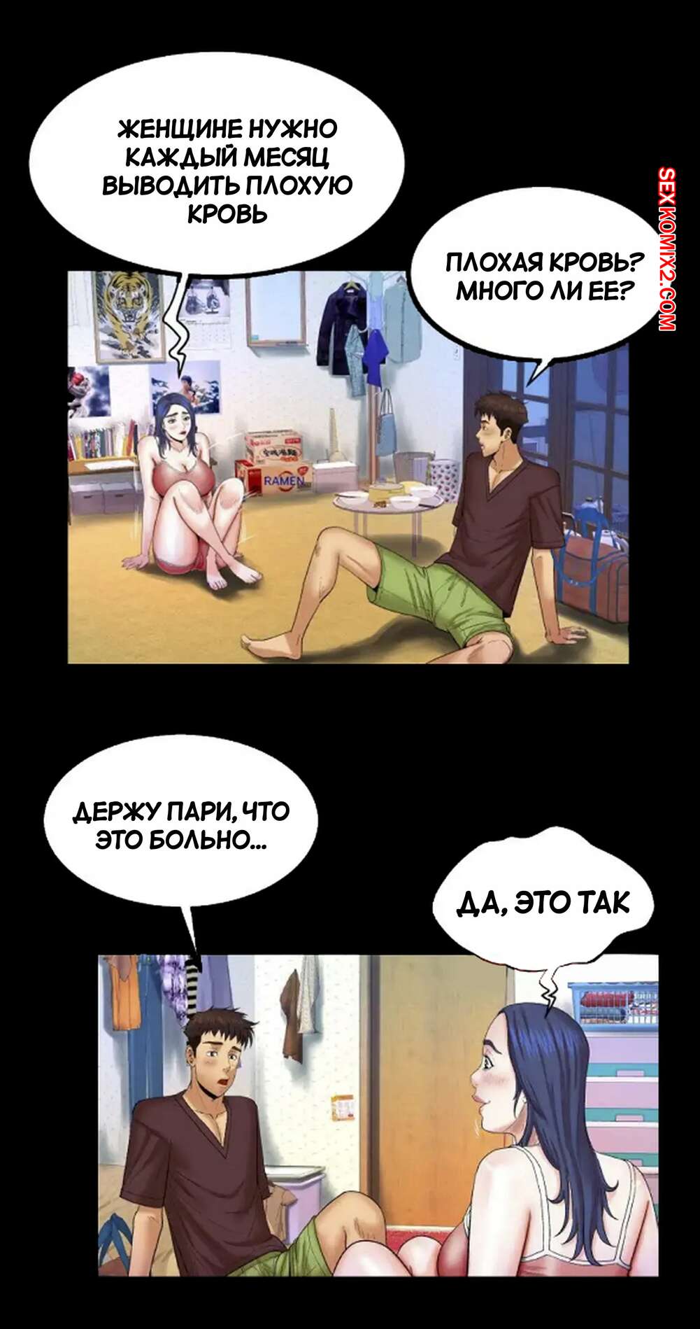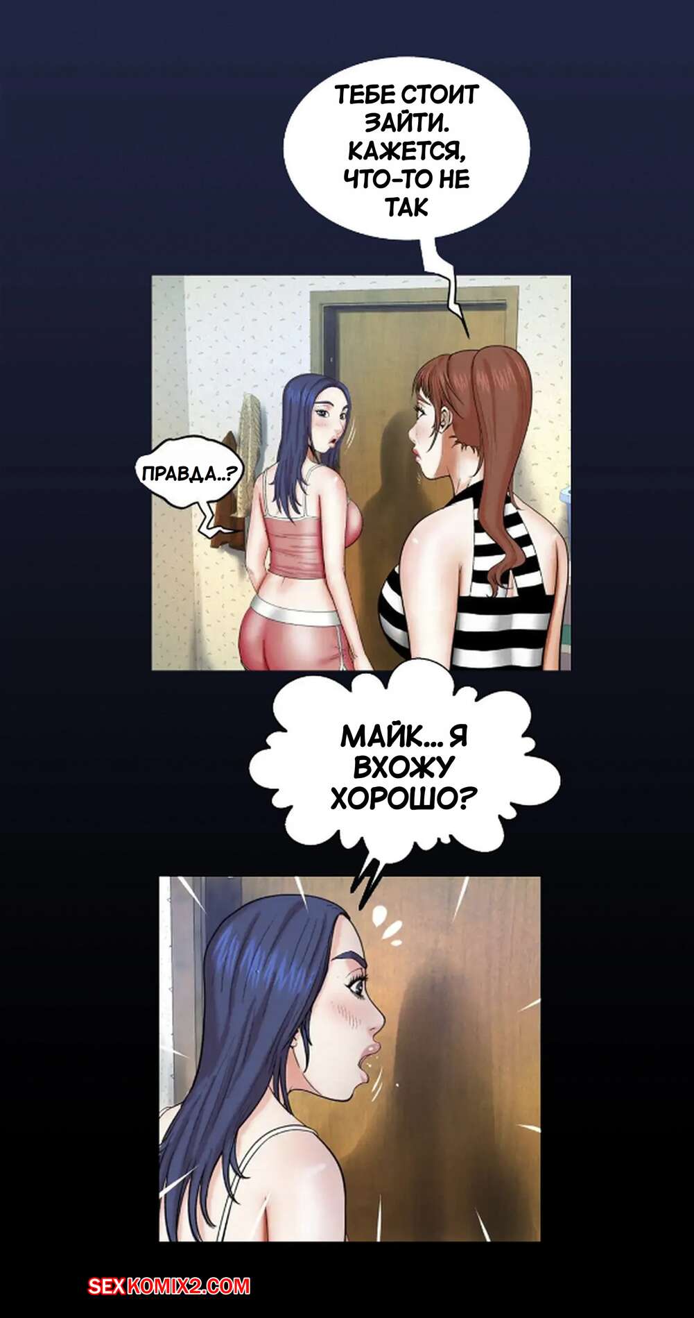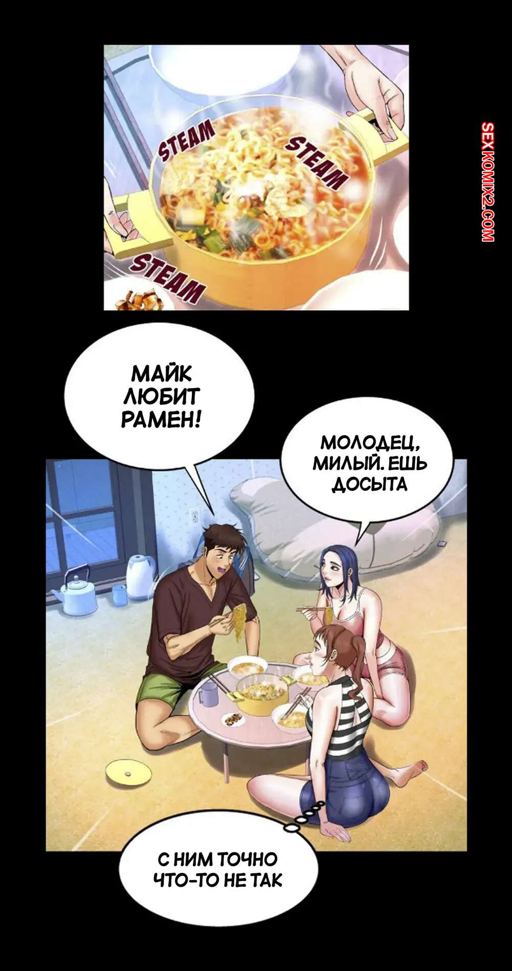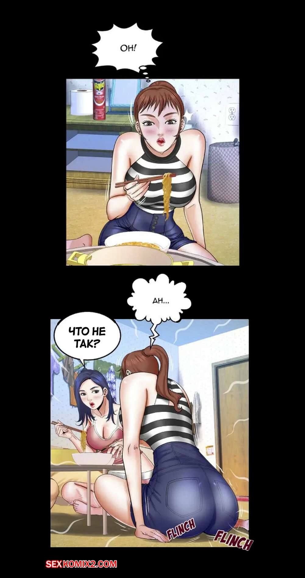 Порно комикс Моя тетя. Без цензуры. Часть 25. My Aunt. Toomics Девушка с трудом дождалась, когда парень выйдет из ванной, и сама побежала туда. Красотки долго не было, поэтому парень пошел туда к ней, чтобы узнать в чем дело.
