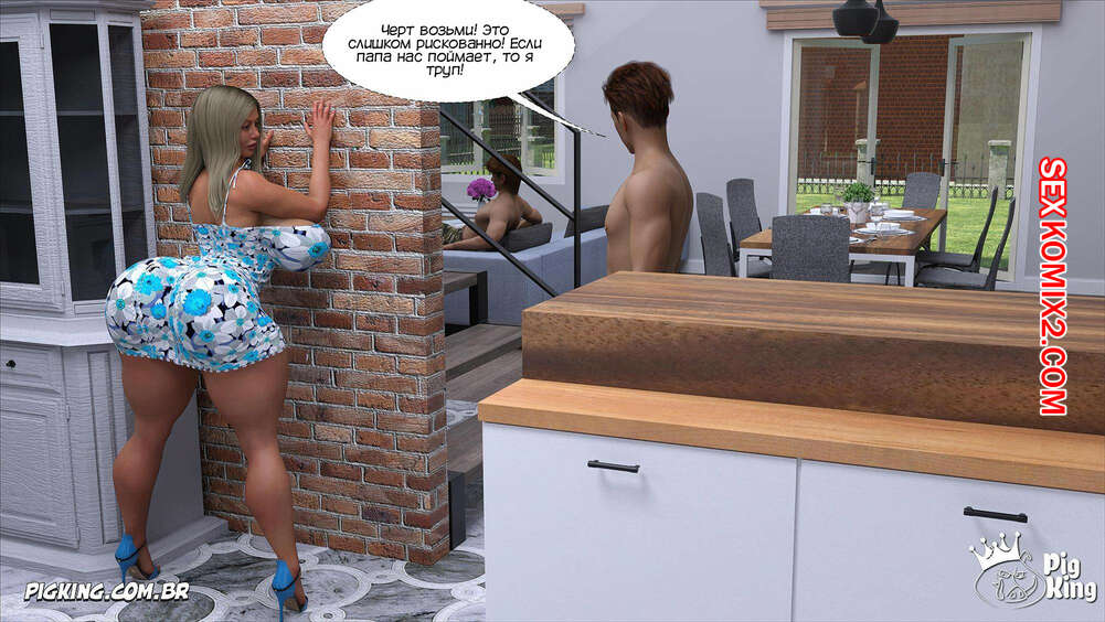 Порно комикс Каролина. Часть 6. Caroline. CrazyDad3D Горячая милфа Каролина уединилась на кухне со своим сыном, пока ее муж смотрел телевизор в гостинной. Парень стал ласкать большие сиськи мамки, после чего хорошенько ее выебал.