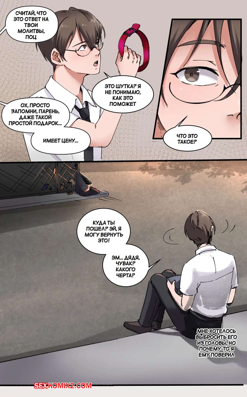 Порно комикс Все по цене. Everything for a Price. Meowwithme. Молодой парень наткнулся на мошенника и купил у него странный ошейник. Одев его, он лег спать, но проснувшись, он обнаружил, что превратился в сексуальную девушку.