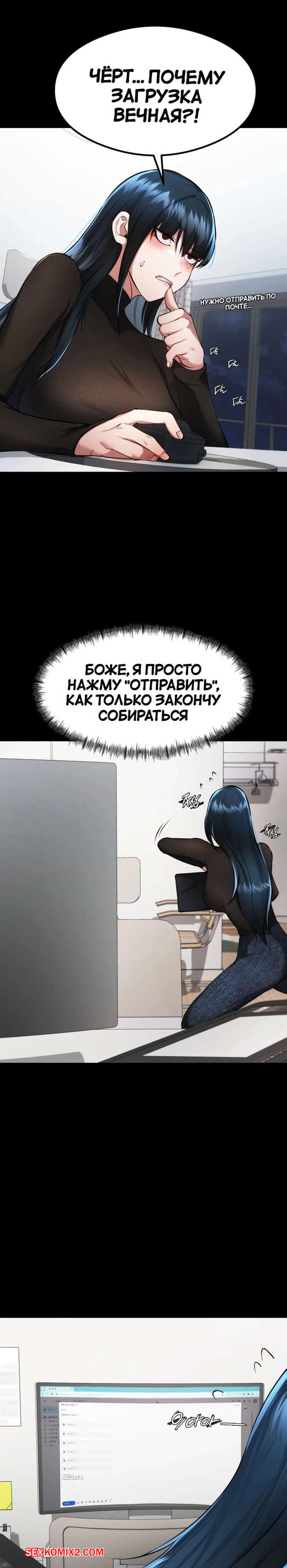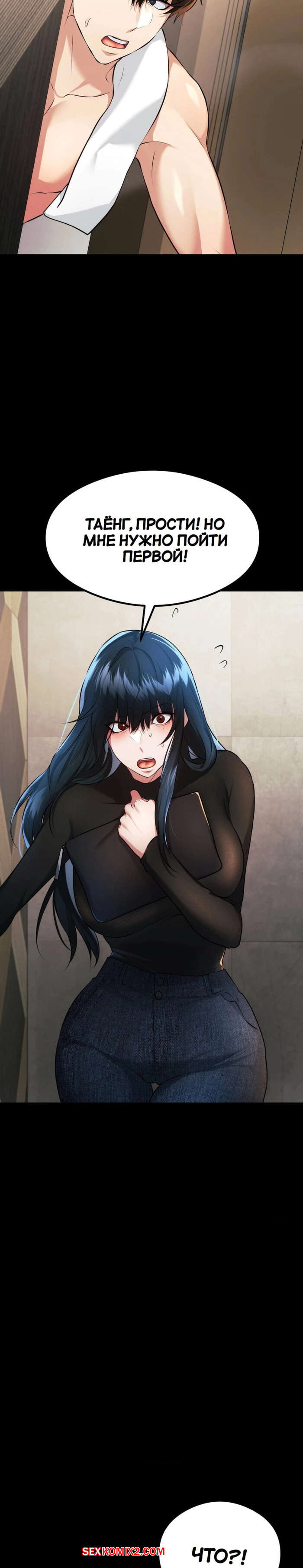 Порно комикс Открытый разговор. Часть 22. Open Talk Горячая брюнетка застала парня после душа и сильно смутилась, увидего его полуголым. Девушка поспешила покинуть квартиру, сказав своему дружку, что у нее срочные рыбочие вопросы.
