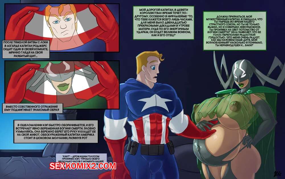 Порно комикс Marvel. Испытание Кэпа. Caps Trial. Lurkergg. Капитан Америка встретил богиню Хелу, которая решила по максимуму воспользоваться смертным мужчиной. Красотка возбудила парня шикарным телом и дала ему себя выебать, после чего он заполнил Хелу своей спермой, от чего богиня забеременела.