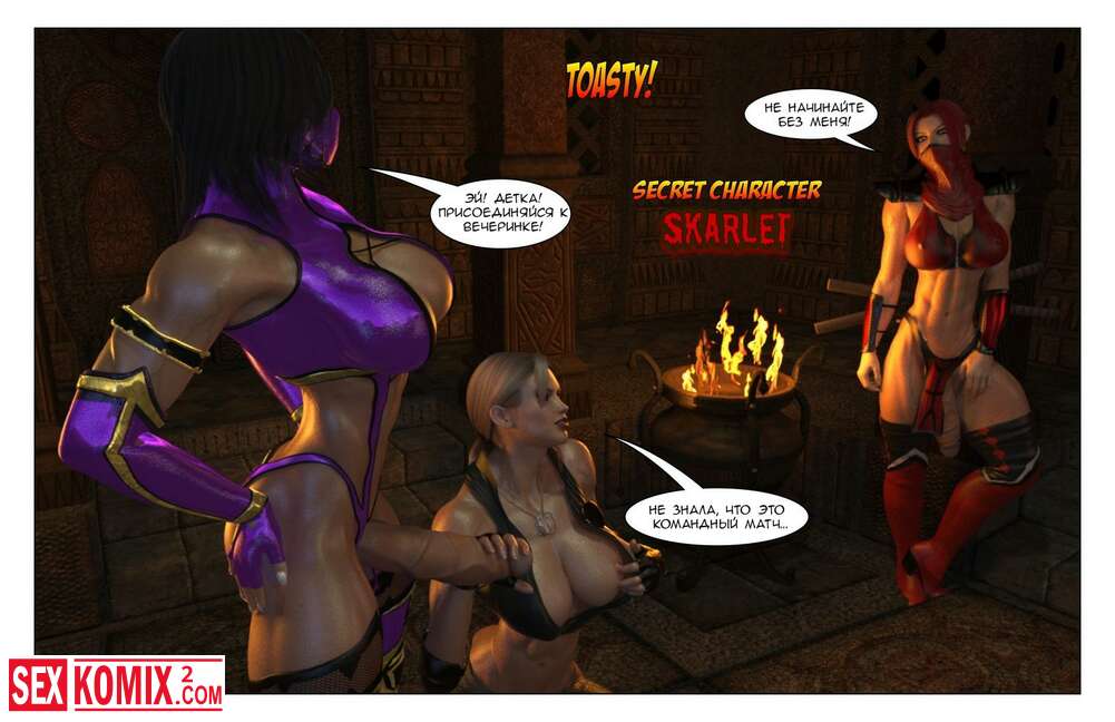 Порно комикс Мортал комбат. Mortal Kombat. Это не похоже на битву, но победитель тут точно должен быть. Два транса трахают девушку.