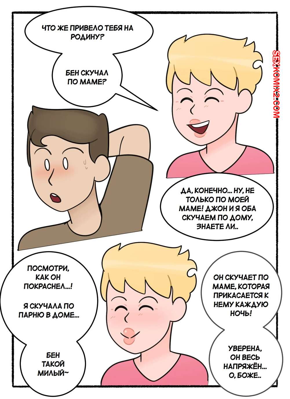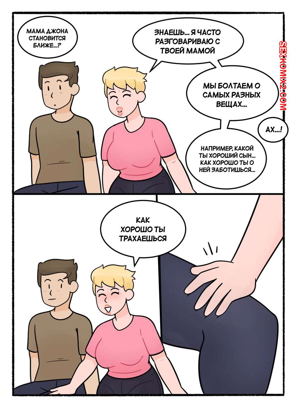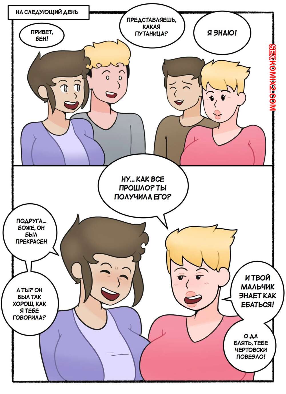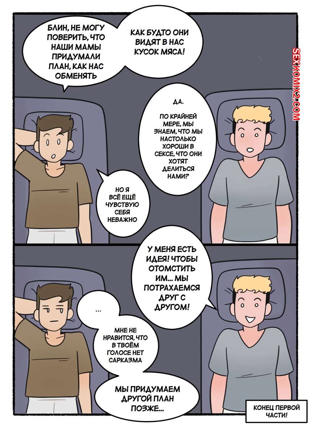Порно комикс Обмен мамками. Swapping Moms. DeadEndDraws. Две горячие милфы по ошибке оказались наедине с сыновьями друг дружки и решили воспользоваться моментом. Красотки разделись и стали сосать большие хуи парней, после чего дали им себя выебать.