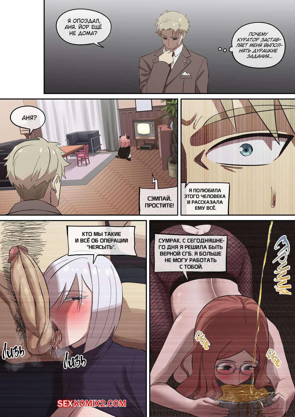 Порно комикс Spy X Family. Дневник проституток падших сучек. Akaimelon Горячие красотки пали и теперь встречаются с мерзкими богатыми мужиками. Девушки раздеваются и сосут большие хуи мужиков, после чего дают им себя хорошенько выебать во все дырочки.