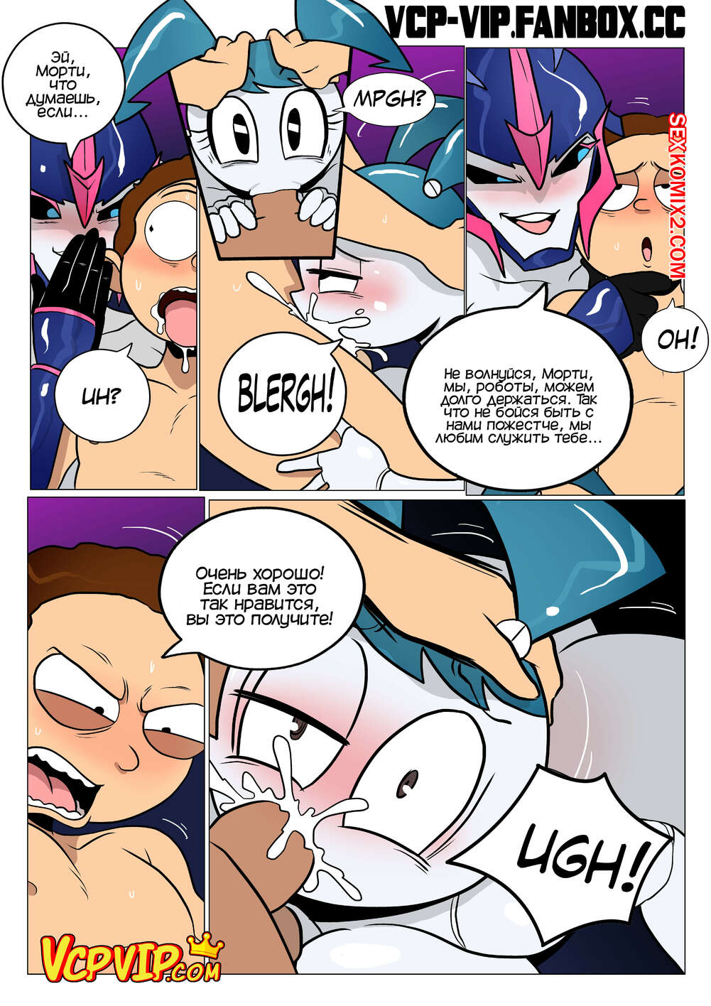 Порно комикс Рик и Морти. Увеселительная поездка. Часть 5. Pleasure Trip. Gansoman Морти проснулся в неизвестной для себя лаборатории и обнаружил красток роботов из разных вселенных. Девушки стали ласкать хуй парня и дали ему себя выебать, чтобы он помог им вновь заселить Землю.