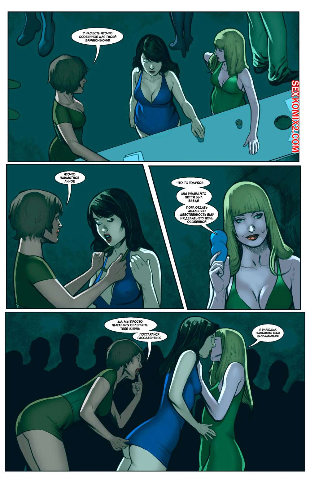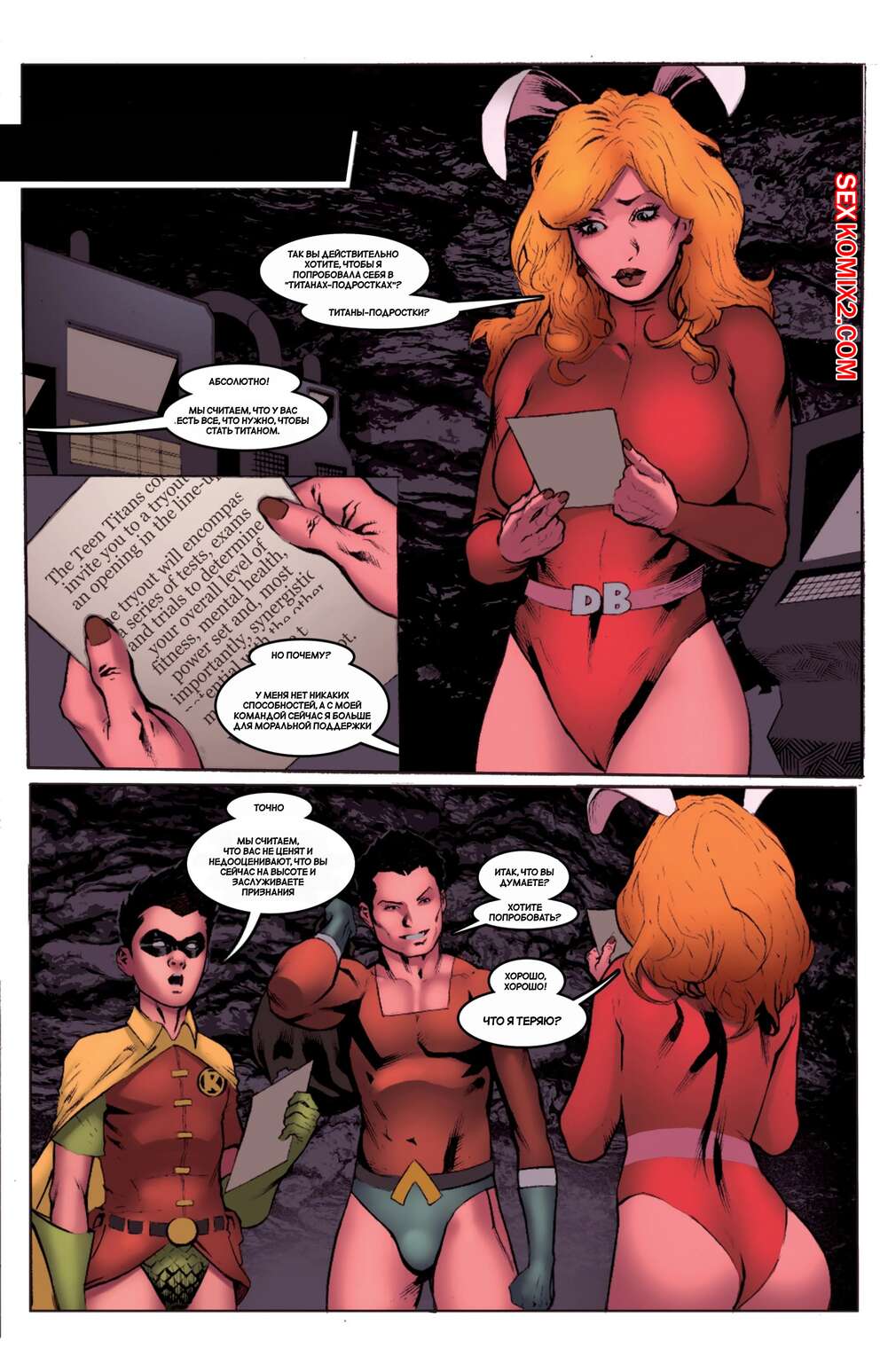 Порно комикс Супергерои после полуночи. Часть 2. Superheroes After Dark Два парня героя остались наедине со своей сексуальной подругой и решили не упускать такую возможность. Они раздели девушку и дали ей отсосать свои большие хуи, после чего хорошенько ее выебали.