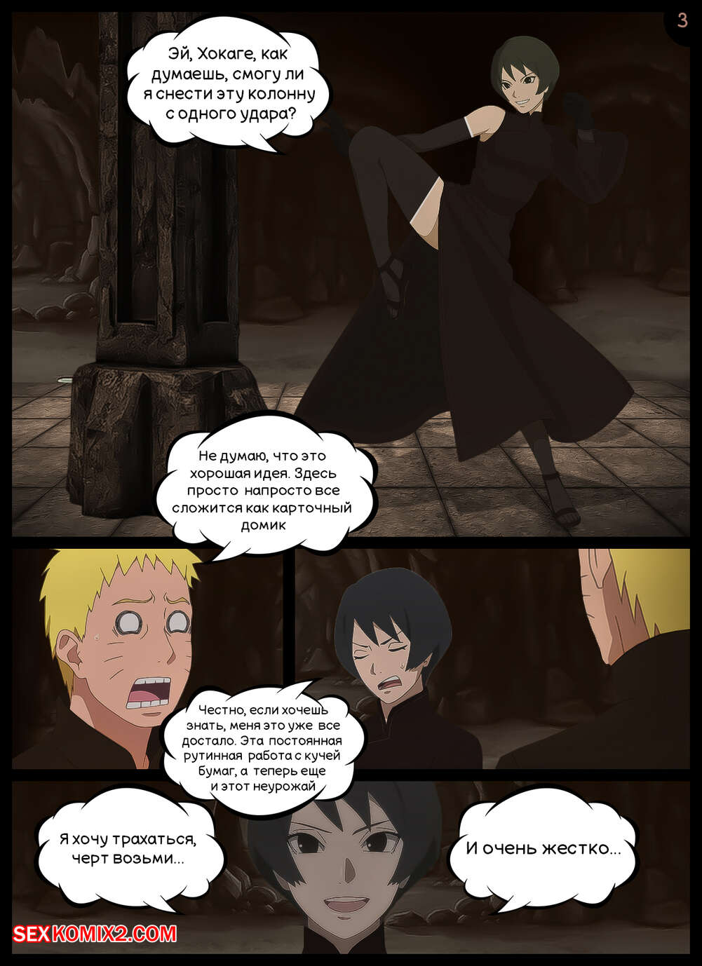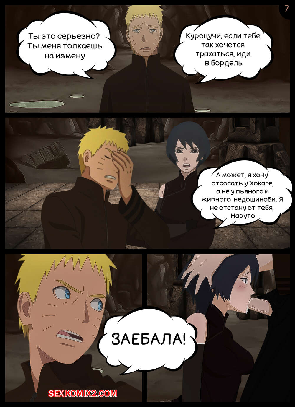 Порно комикс Наруто. Непристойное Предложение. An obscene offer. KristoLin Куроцучи использует момент и склоняет Наруто к сексу в подземном комплексе. Вскоре Хокаге сдается и трахает Цучикаге во все дырочки, доставляя девушке огромное удовольствие.