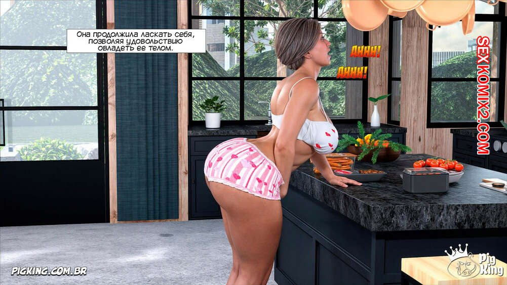 Порно комикс Мисс Камила. Часть 2. Ms. Camila. PigKing Горячая милфа осталась дома одна в очень возбужденном состоянии. Красотка отправилась в комнату и стала ласкать свою пизденку дилдо, представляя секс с сыном.