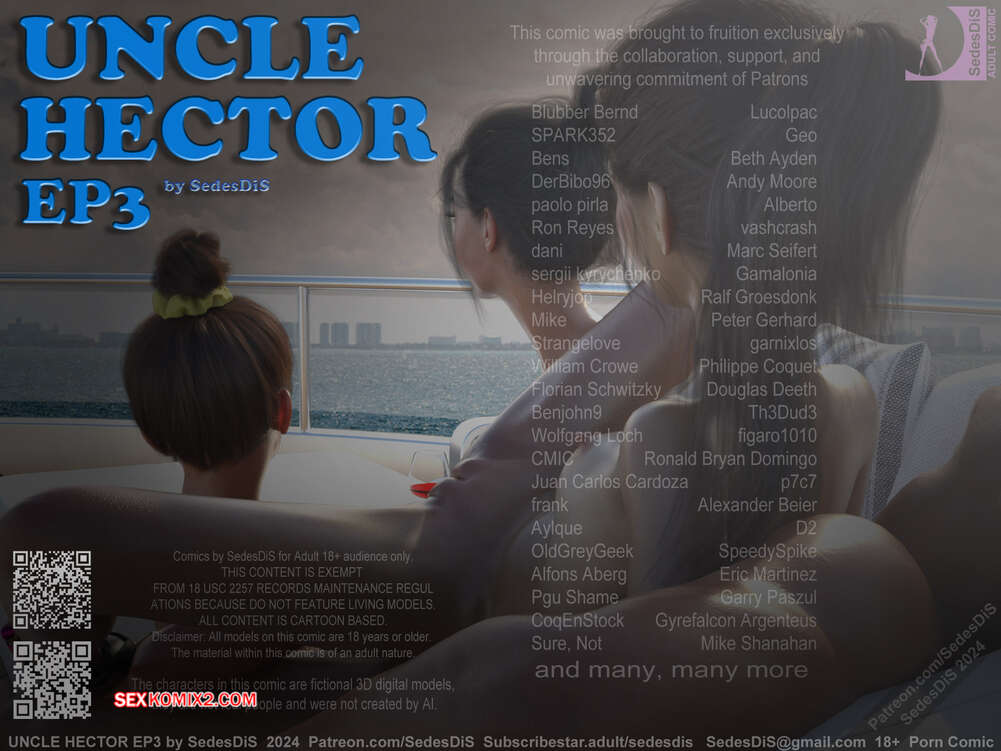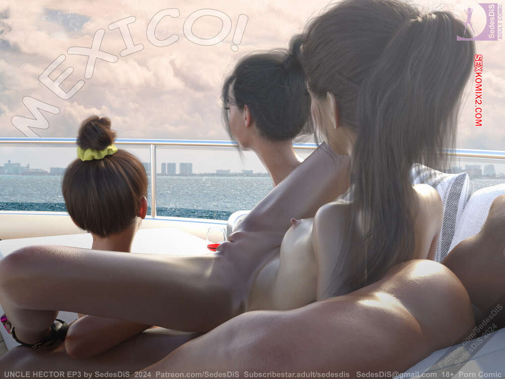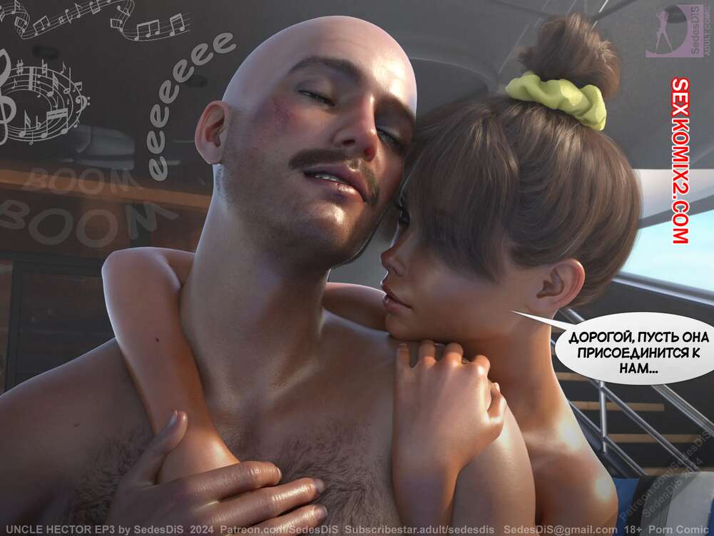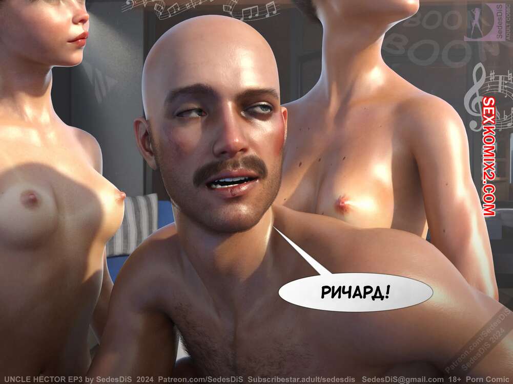Порно комикс Дядя Гектор. Часть 3. Uncle Hector. SedesDiS Горячие брюнетки разделись перед дядей Гектором и возбудили его шикарными телами. Красотка раздвинули ножки и дали парню себя хорошенько выебать, получив удовольствие.