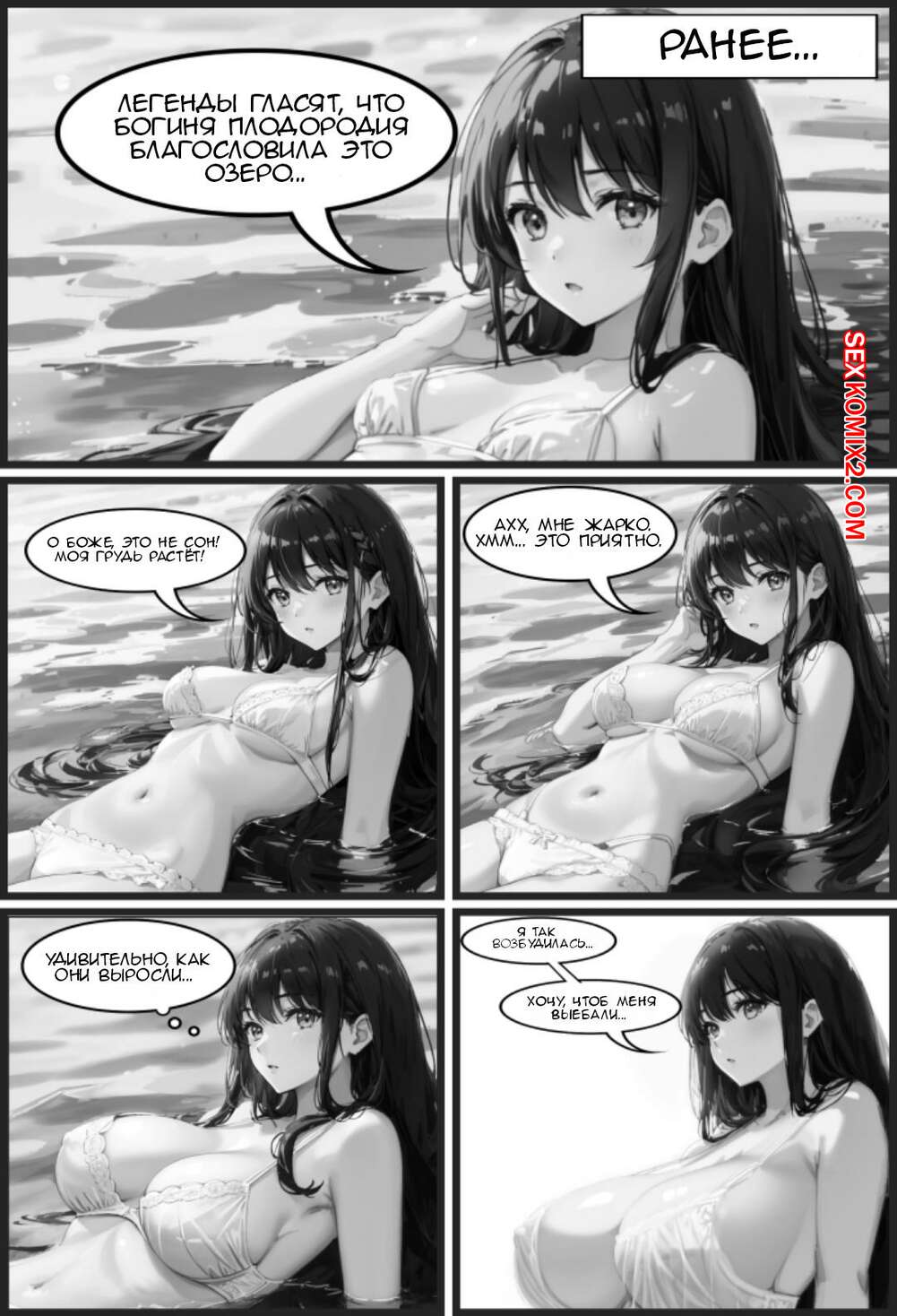Порно комикс Волшебное озеро. Часть 1 и 2. The Magic Lake. G U C Молодая горячая брюнетка приехала искупаться в волшебном озере. Девушка зашла в воду и с ней стали твориться изменения, ее сиськи и задница стали больше, а сама красотка очень возбудилась и теперь хочет трахаться.