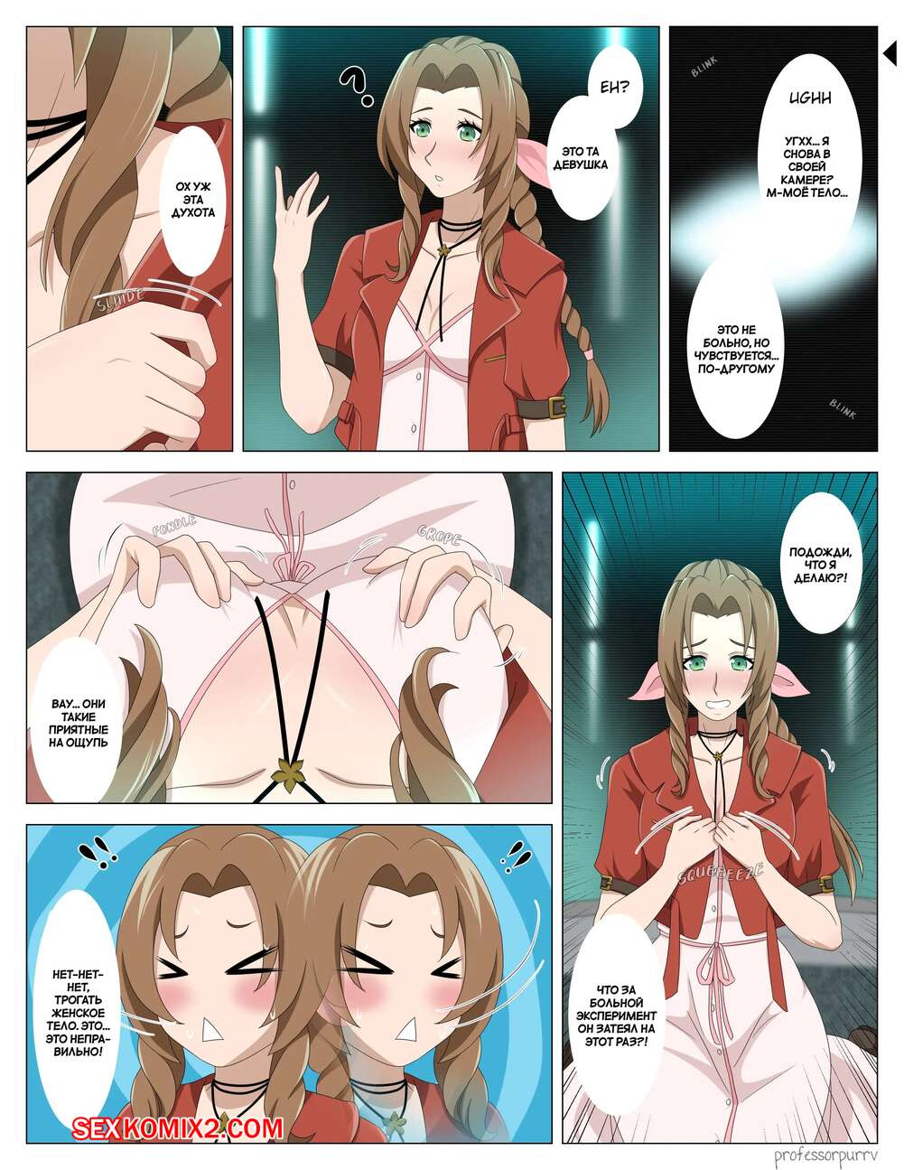 Порно комикс Final Fantasy VII. Аерит в красном. Aerith in Red. TSFSingularity , ProfessorPurrv. Парень переселил горячую девушку фурри в тело сексуальной брюнетки. Красотка была поражена своим новым телом и сильно возбудилась, после чего стала ласкать свою пизденку.