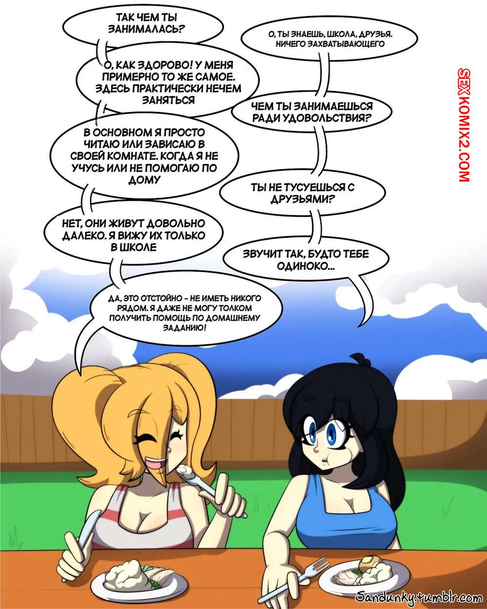 Порно комикс Гуще, чем вода. Часть 1. Thicker Than Water. Sandunky. Горячие подруги были очень возбуждены и решили повеселиться. Девушки стали страстно целоваться и ласкать друг дружку, после чего разделись и занялись страстной лесбийской еблей.