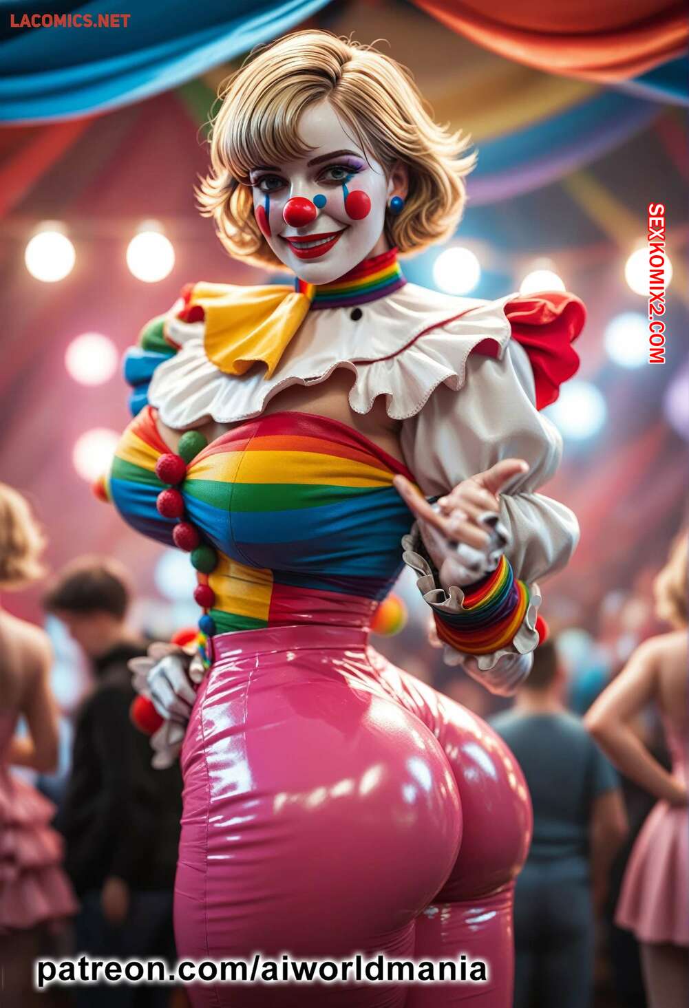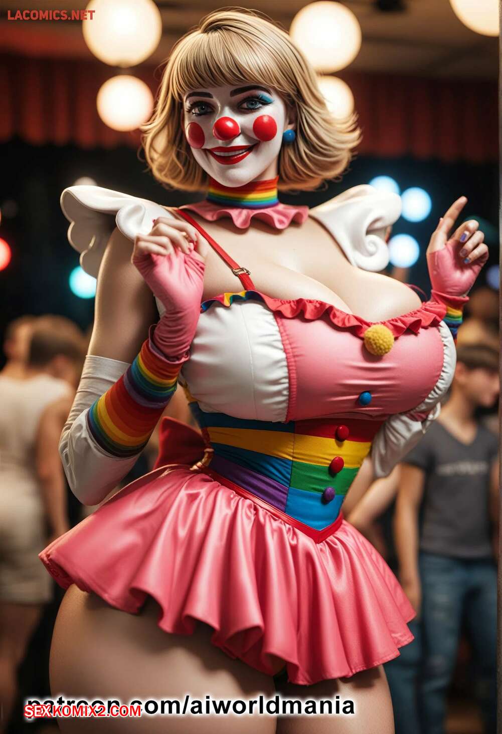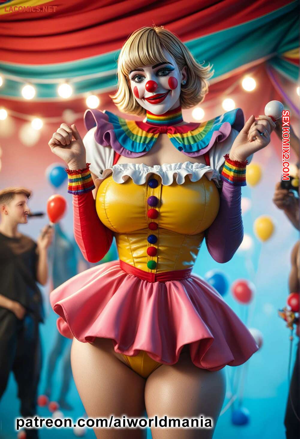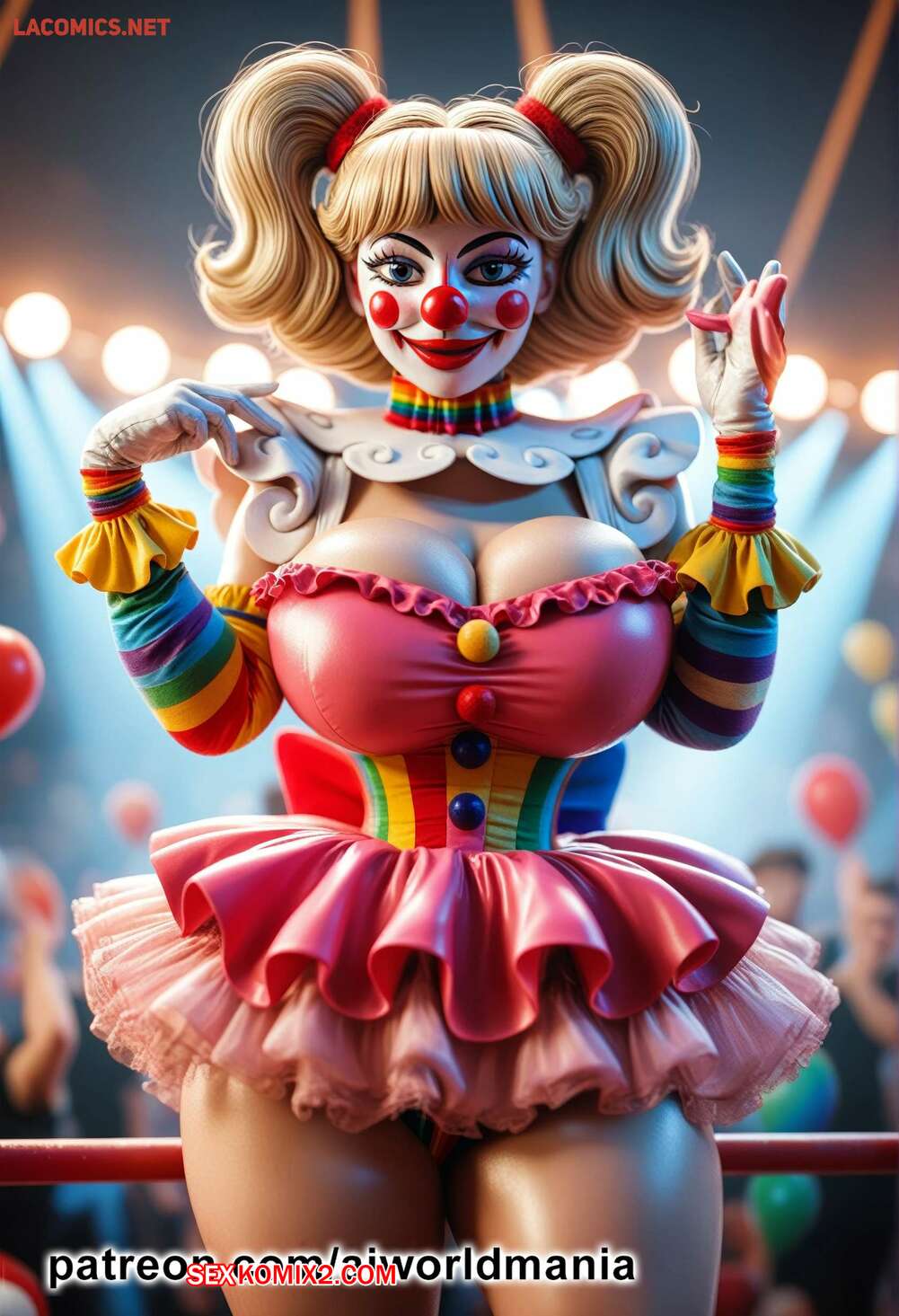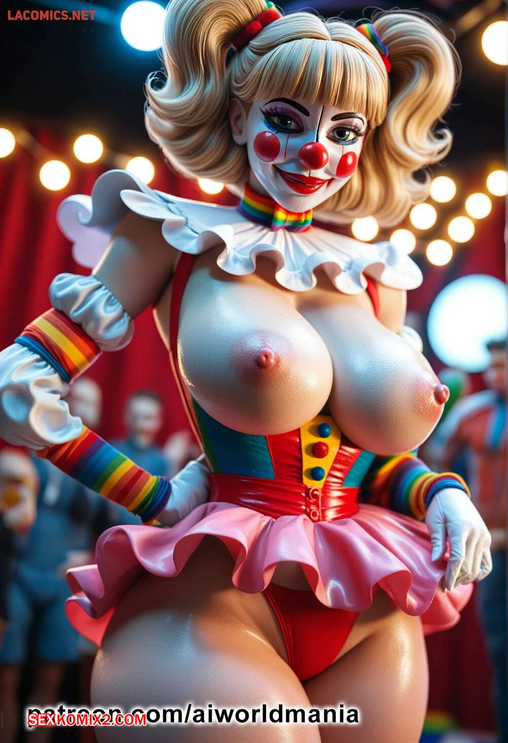 Порно комикс The little clown of love Горячая блондинка клоун была очень возбуждена и решила повеселиться со своим дружком. Девушка встала на колени и отсосала хуй парня, после чего дала ему себя выебать.