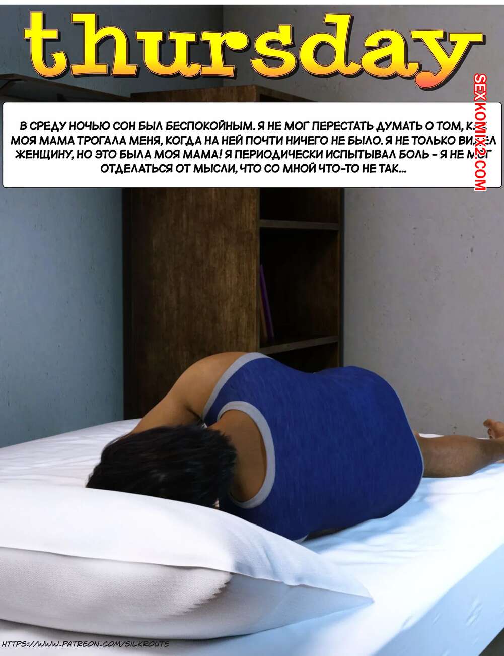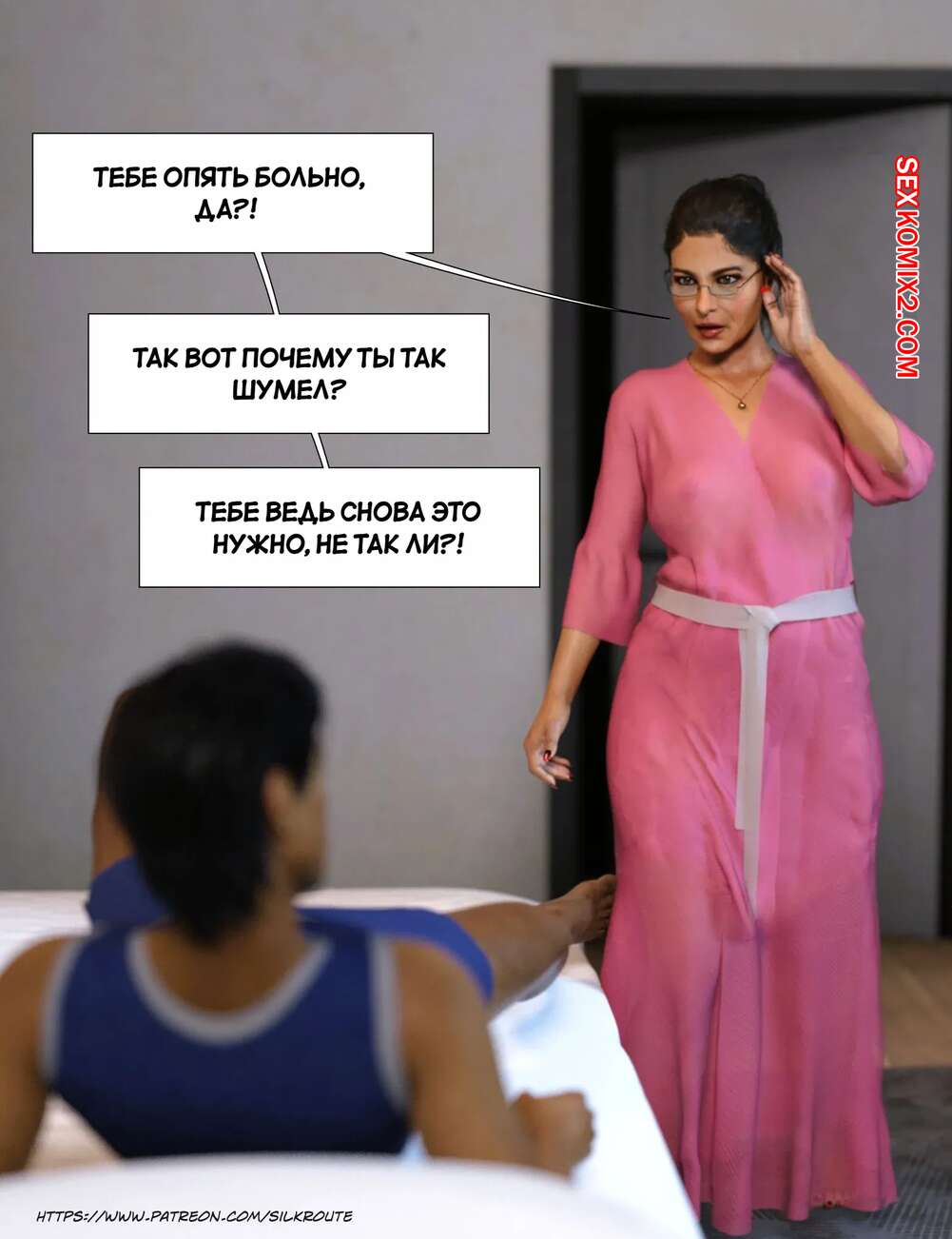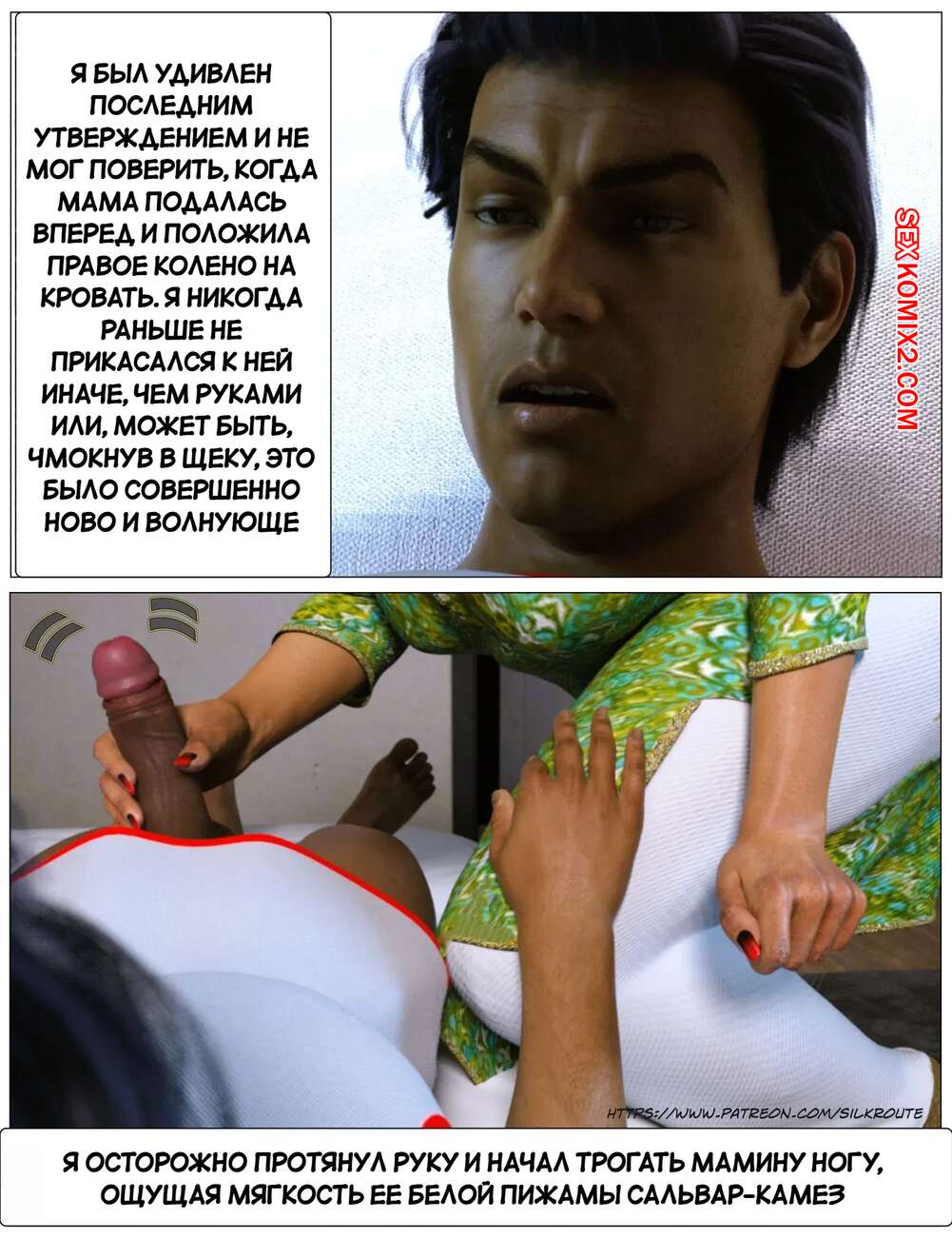 Порно комикс Прошу, помоги мне расслабиться. Часть 2. Please Relieve Me. Silk Route, Ira Raman Горячая милфа пришла к своему сыну в комнату, чтобы помочь ему расслабиться. Красотка разделась и возбудила парня шикарным телом, после чего стала дрочить его член.