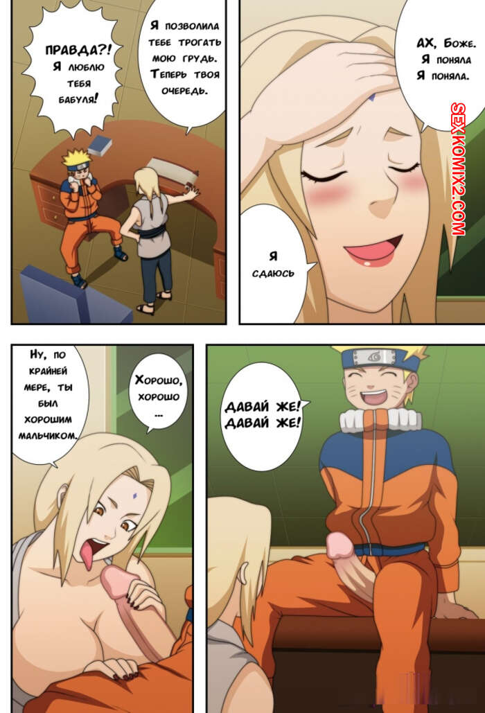 Порно комикс Наруто. Ниндзя с большими сиськами. Big Breast Ninja. Naruhodo Возбужденный Наруто прибежал на работу к Цунаде, желая с ней повеселиться. Он стал ласкать большие сиськи бабули, после чего она отсосала большой хуй парня и дала ему себя выебать.
