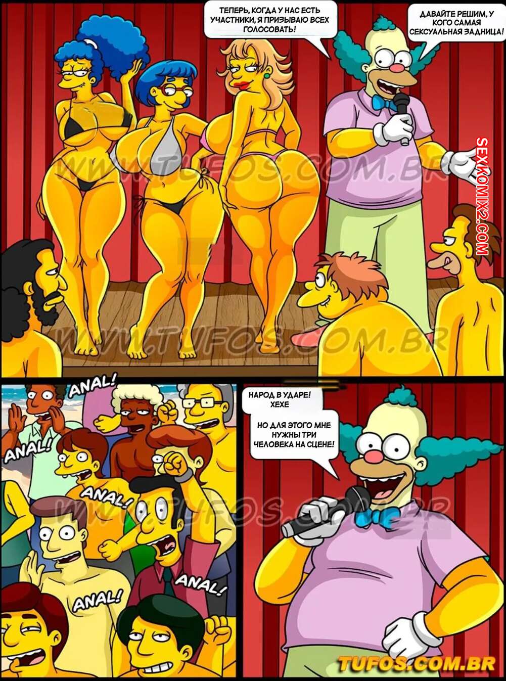 Порно комикс Симпсоны. Часть 67. Самая горячая попка на пляже. Os Simptoons. Tufos Горячие милфы решили выяснить у кого из них самая горячая задница на пляже. Красотки встают на колени и сосут большие хуи молодых парней, после чего дают им выебать свои попки, чтобы они определили победительницу.
