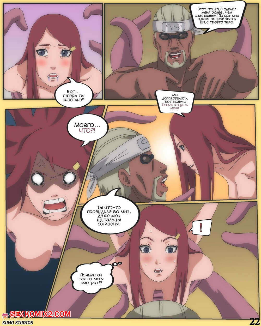 Порно комикс Наруто. Мама Наруто. Narutos Mom. KumoStudios. После тренировки с Наруто старик добился уеденения с его горячей мамкой. Он стал ласкать горячую милфу с помощью своих щупалец, желая возбудить красотку и выебать ее.