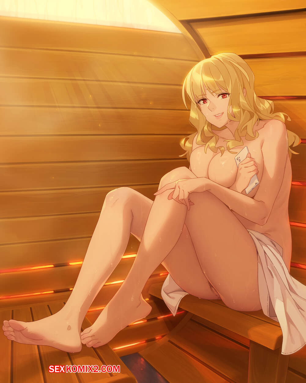 Порно комикс Клара за работой. Тактическая сауна. feguimel Горячая блондинка отдыхала в сауне и решила немного расслабиться. Девушка достала телефон и стала снимать на камеру, как она ласкает свою пизденку, получая огромное удовольствие.