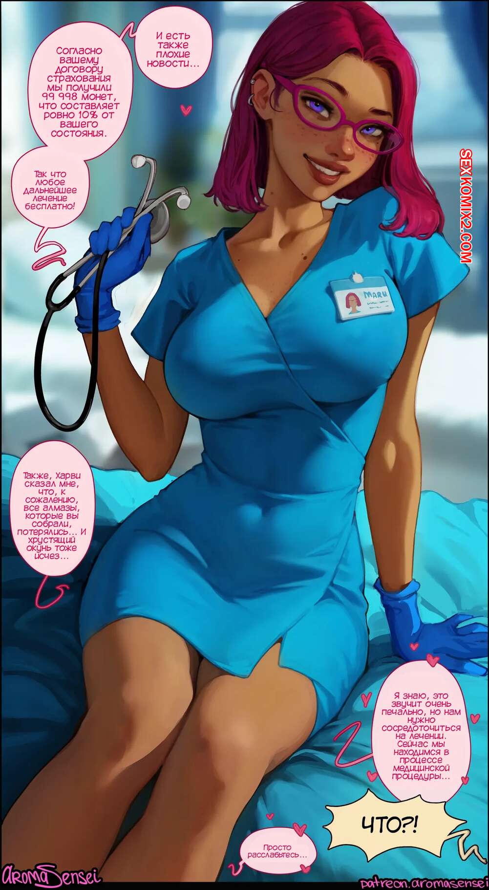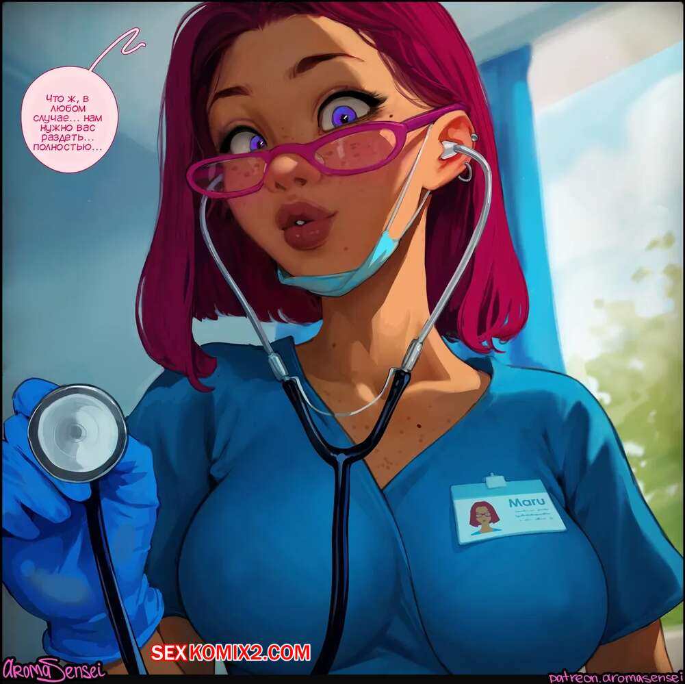Порно комикс Мару. Maru. Aroma Sensei Горячая медсестра пришла в палату к своему пациенту, чтобы как следует за ним поухаживать. Красотка встала на колени и отсосала большой хуй парня, после чего дала ему выебать свою пизденку.
