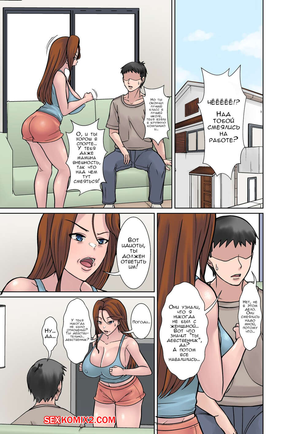 Порно комикс Бывшая мать хулиганка дает двум сыновьям уроки секса. Hoyoyo Горячая милфа была очень возбуждена и решила повеселиться со своими сыновьями. Красотка разделась и отсосала большие хуи парней, после чего дала им себя выебать.