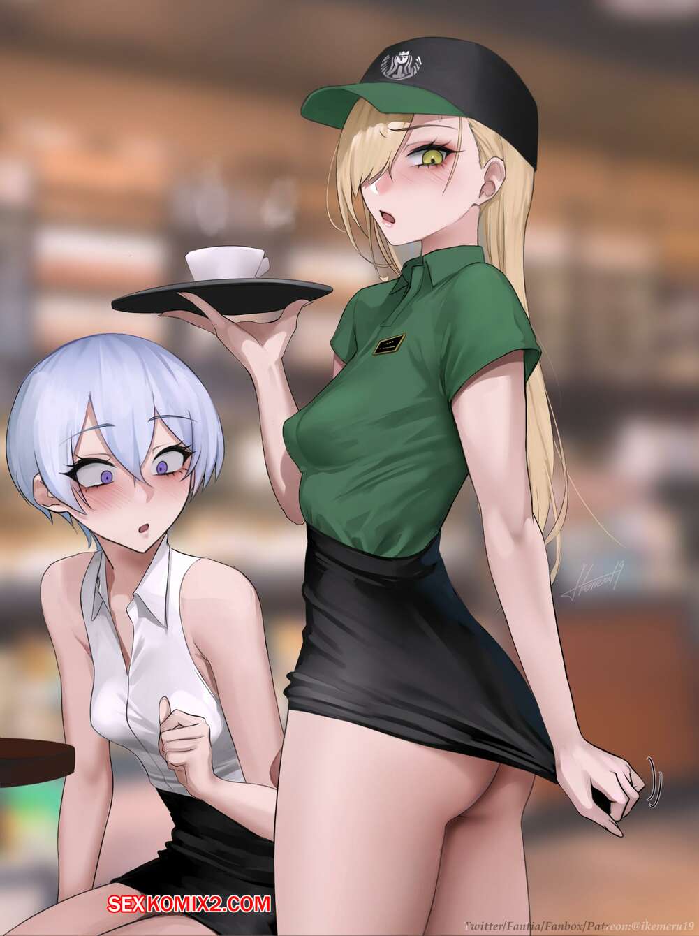 Порно комикс Кафе. Kafe. ikemeru19 Горячая блондинка увидела член официантки в кафе и очень возбудилась. Девушка взяла в ротик член работницы заведения и хорошенько ей отсосала, получив удовольствие.