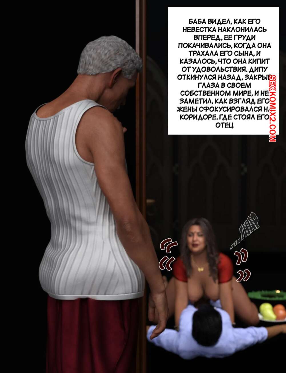Порно комикс Моменты Масала. Часть 1. Masala Moments Муж с женой были очень возбуждены и решили повеселиться. Красотка разделась и возбудила мужа шикарным телом, после чего оседлала его большой хуй и дала себя выебать, пока за ними наблюдал отец мужа.