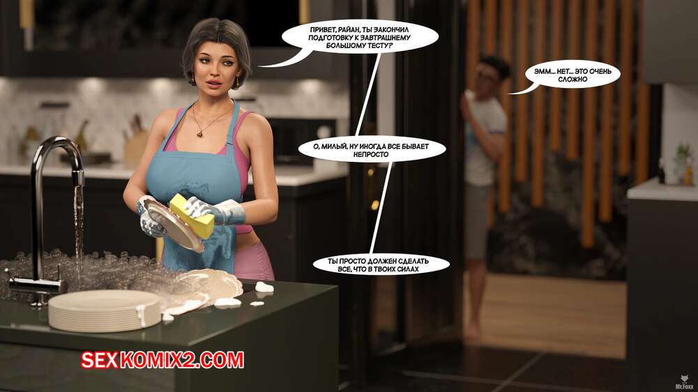Порно комикс Стояк. Hard. Mr.Foxx. Юный парень занимался учебой, но ему мешал его стояк, поэтому он обратился за помощью к маме. Красотка разделась и отсосала большой хуй сына, после чего дала ему себя выебать.