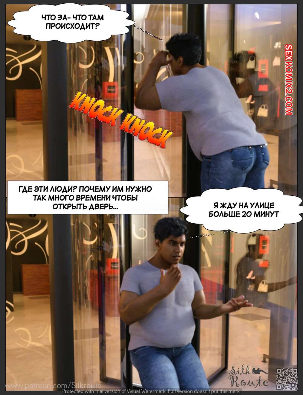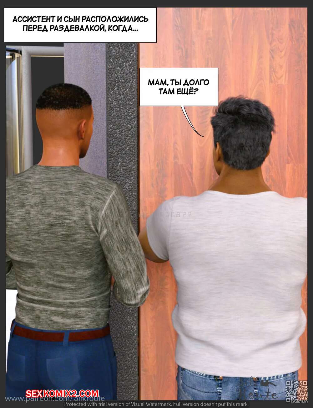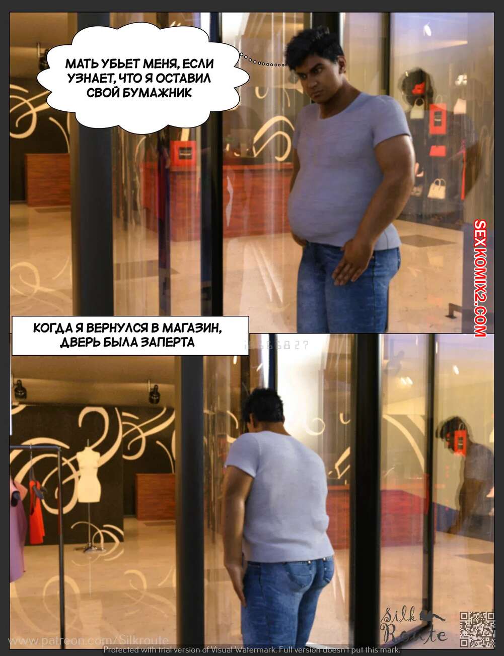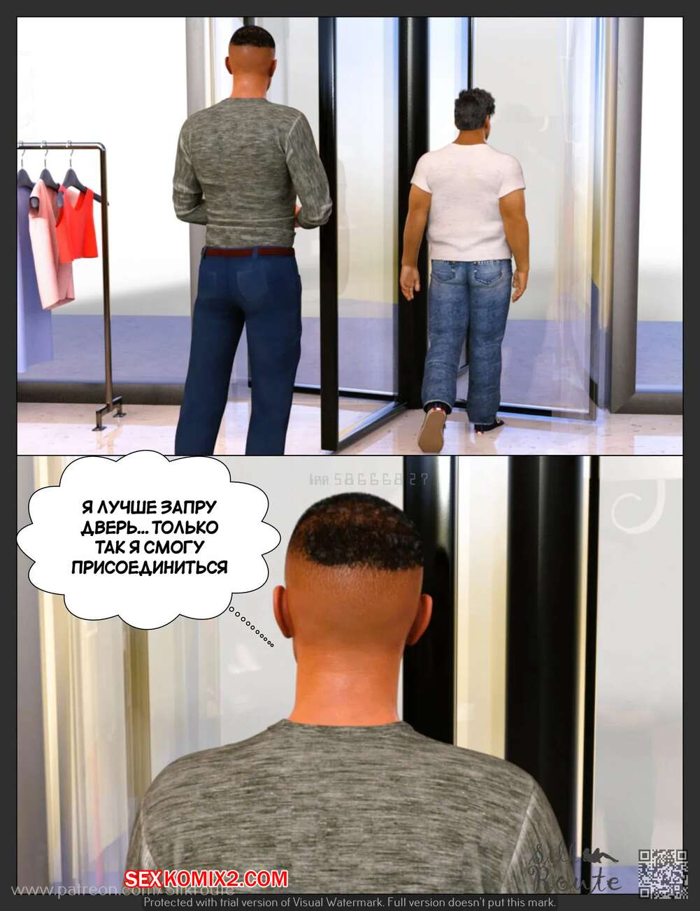 Порно комикс Тетушка Рани. Часть 3.2. Rani Aunty. Silk Route Горячая милфа была очень возбуждена и решила повеселиться с незнакомцем в примерочной. Красотка встала на колени и отсосала большой хуй парня, после чего дала ему себя выебать.