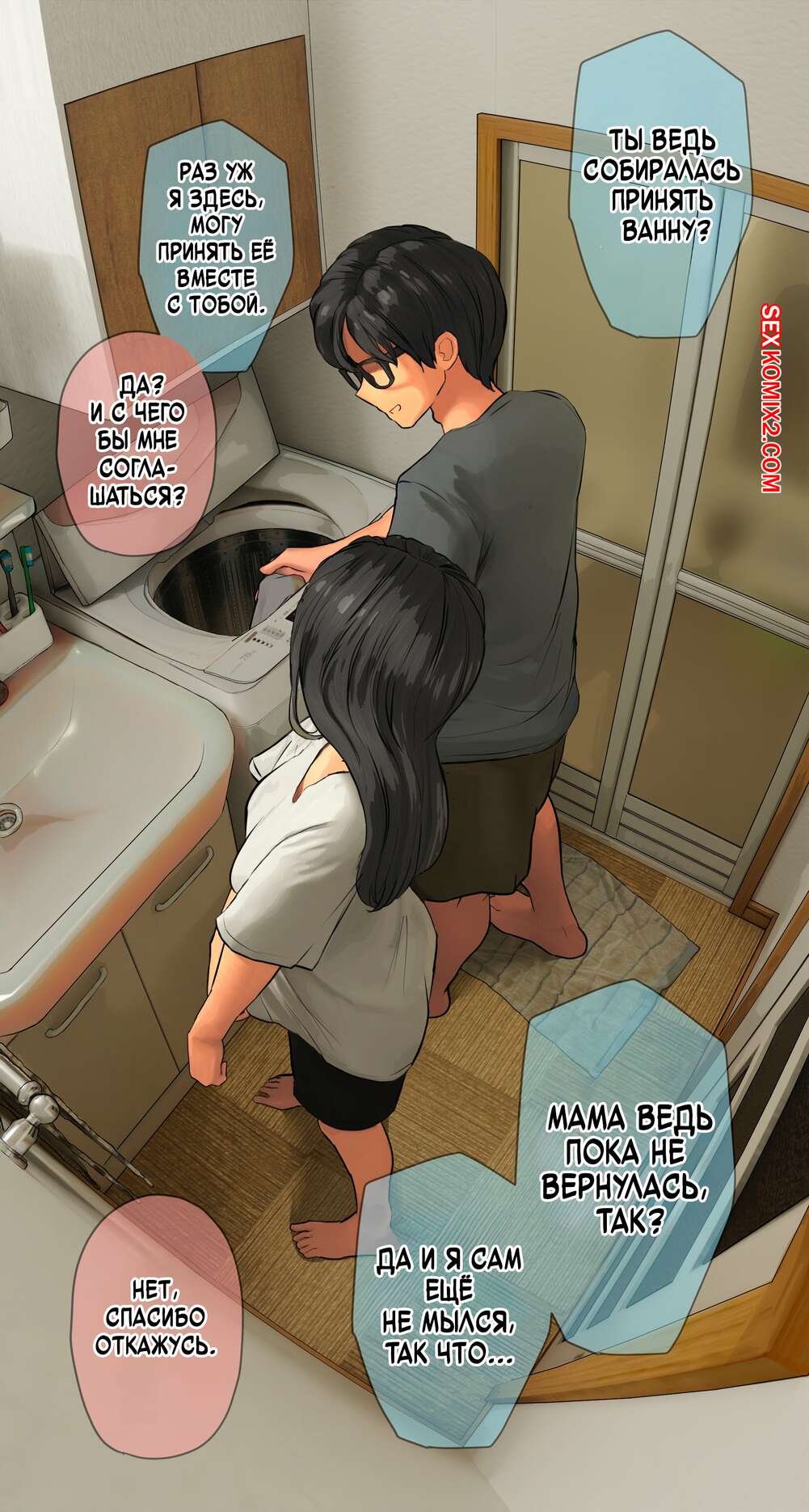 Порно комикс Нао. Nao. Hanpatsu Zokusei Горячая брюнетка собиралась принять ванну, но к ней подошел ее братик и стал ласкать большие сиськи девушки. Красотка встала на колени и отсосала хуй парня, после чего он стал тереться членом у нее между бедер.