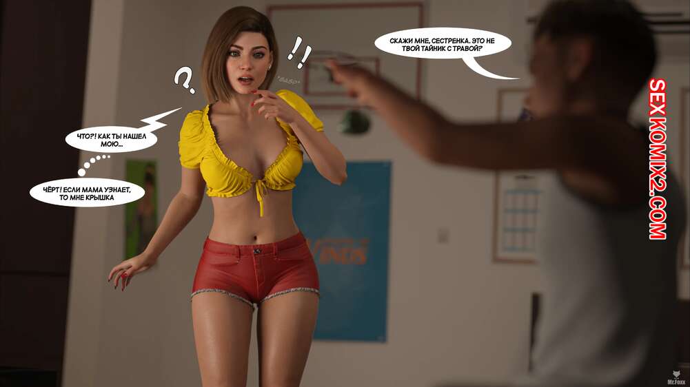 Порно комикс Тайник. Stash. Mr. Foxx. Джимми спалил тайник с травкой своей старшей сестры и решил воспользоваться этим в своих целях. Он стал шантажировать Стейси, желая выебать пизденку сестренки в обмен на то, что он ничего не расскажет маме.