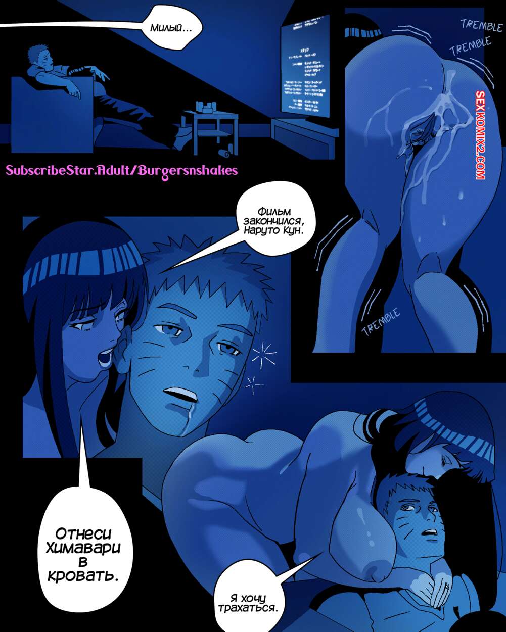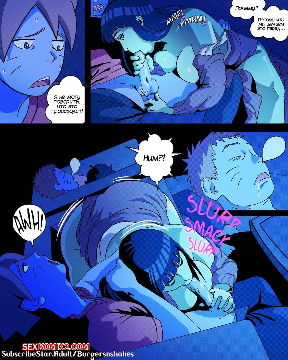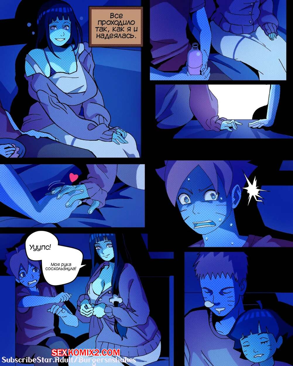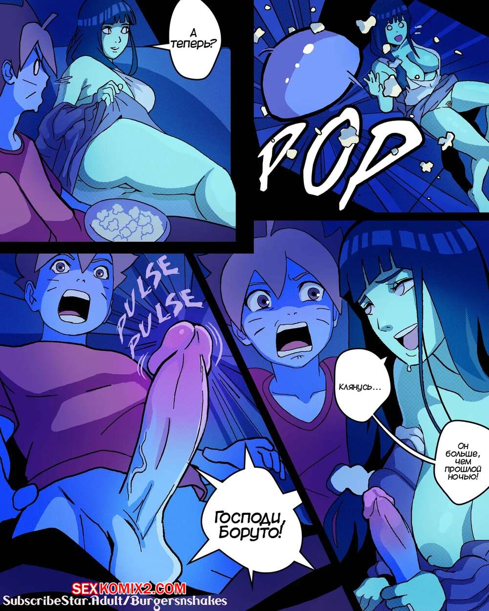 Порно комикс Наруто. Зависимость Хинаты возвращается. Часть 2. BurgersNShakez Хината устроила ночь просмотра фильмов и набухала Наруто. Когда муж и дочь красотки уснули, она стала приставать к Боруто и соблазнять его, желая потрахаться и много раз кончить.