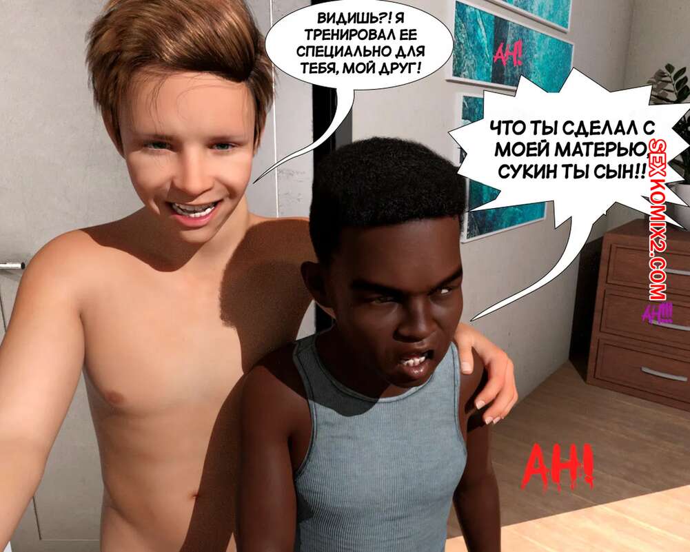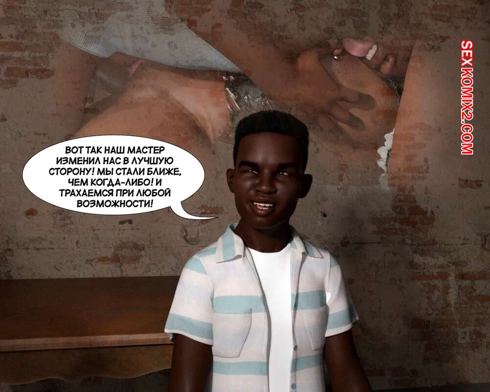 Порно комикс Книга зла. Часть 6. Book of Evil. Fascinum Парень подверг своего друга воздействию книги, чтобы устроить групповую еблю в подвале. Темнокожий парнишка уложил мамочку на кровать и стал ее трахать, пока его друг занимался своей сестрой.