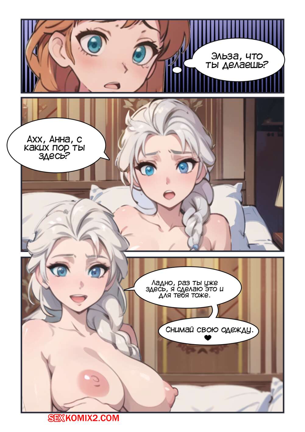 Порно комикс Frozen. Хочешь слепить снеговика. Do You Want to Build a Snowman. Kahoo Анна отправилась в комнату Эльзы, чтобы позвать ее слепить снеговика, но спалила подругу за дрочкой. Блондиночка не стала долго думать и предложила подруге раздеться, чтобы помочь ей расслабиться.