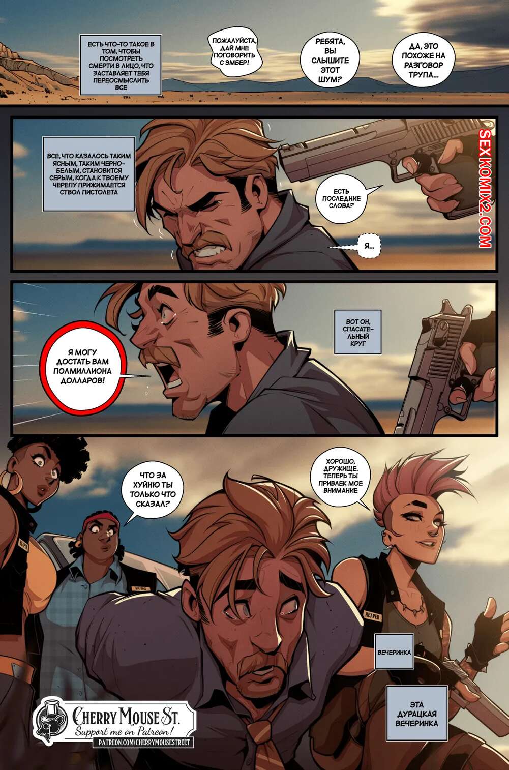 Порно комикс Маккуин. Мертвец идет. McQueen. Dead Man Walking. Cherry Mouse Street. Богатый старик решил устроить сюрприз своей красотке жене. Он пригласил парня с большим членом, чтобы он как следует выебал милфу брюнетку и доставил ей оргазмы.