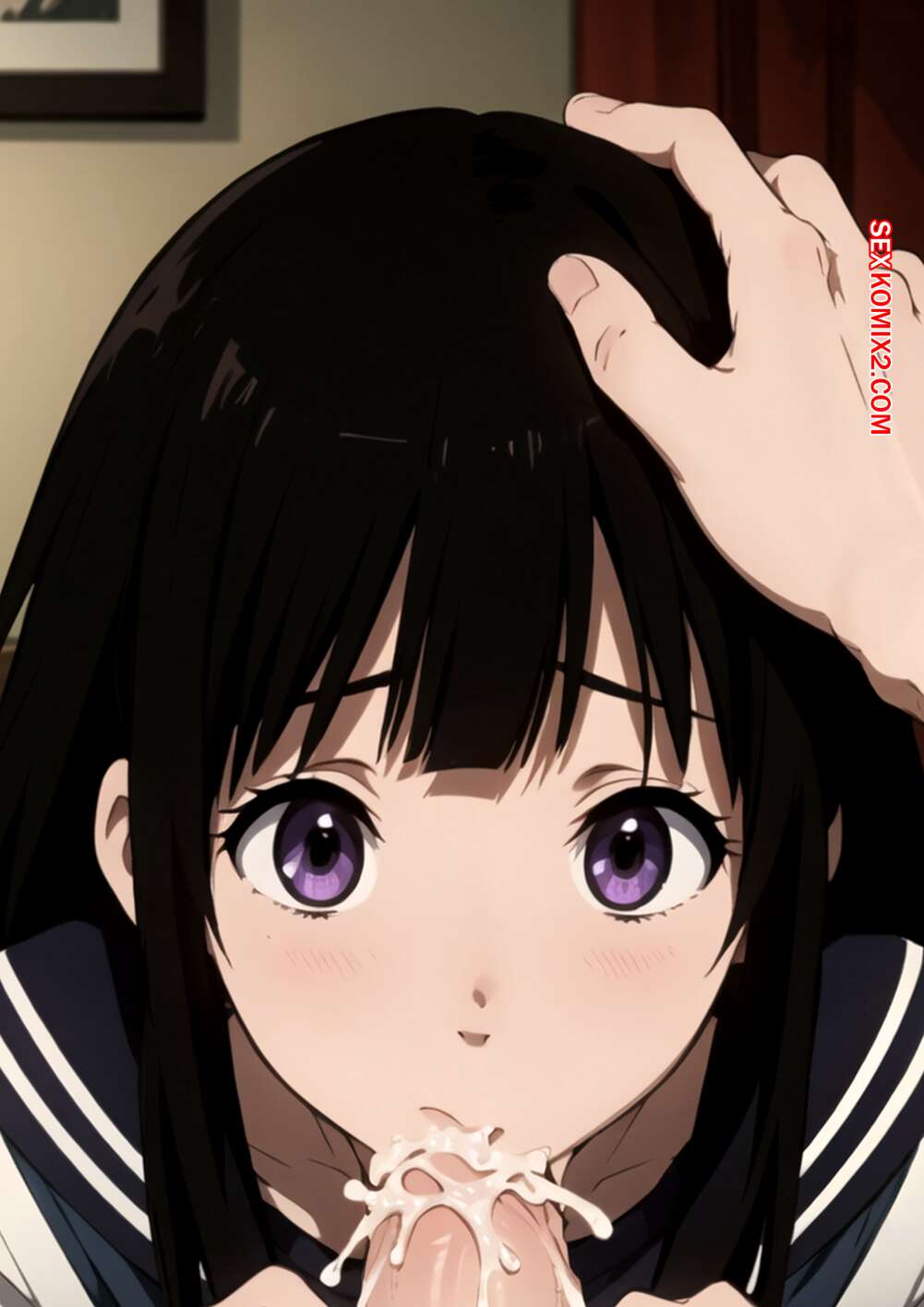 Порно комикс Eru Chitanda. Kahoo Горячая брюнетка была очень возбуждена и решила повеселиться со своим дружком. Она встала на колени и отсосала большой хуй парня, после чего дала ему выебать свою пизденку.