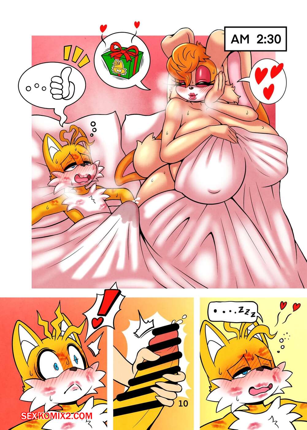 Порно комикс Christmas Present. michiyoshi Горячая красотка решила сделать подарок на рождество Тейлзу. Девушка разделась и возбудила парня шикарным телом, после чего дала ему выебать свою пизденку, получив невероятное удовольствие.
