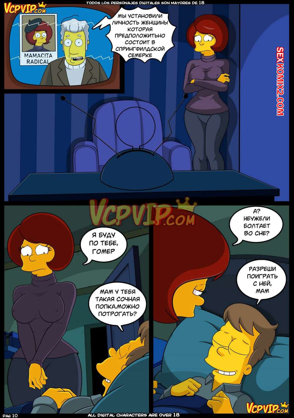 Порно комикс The Simpsons. Мама. Mom. Croc Горячая милфа пришла в комнату к сыну, чтобы попрощаться с ним перед тем, как навсегда уйти. Красотка услышала, что сыну снятся эротические сны о ней, поэтому решила отсосать хуй парня и дать ему себя выебать во все дырочки.