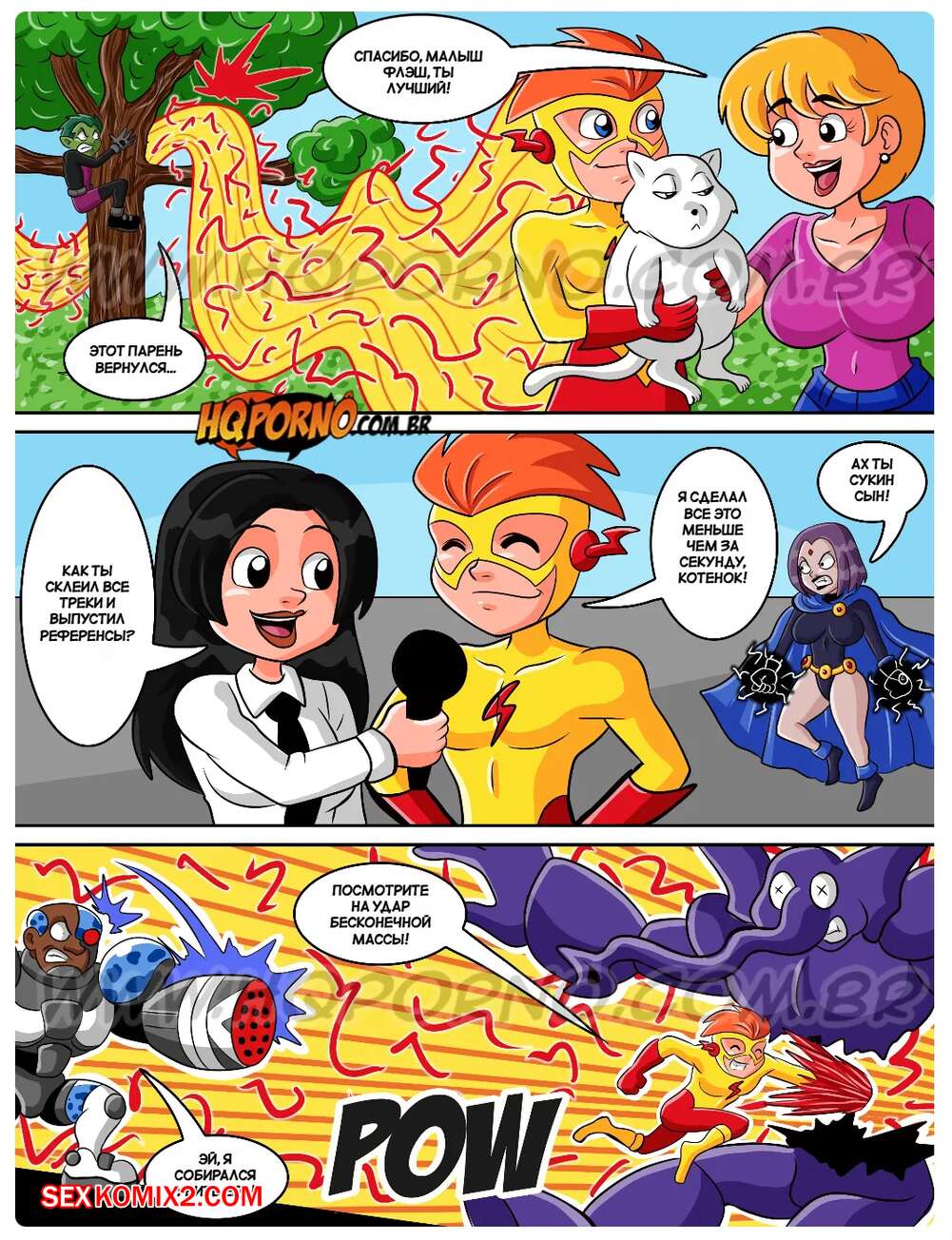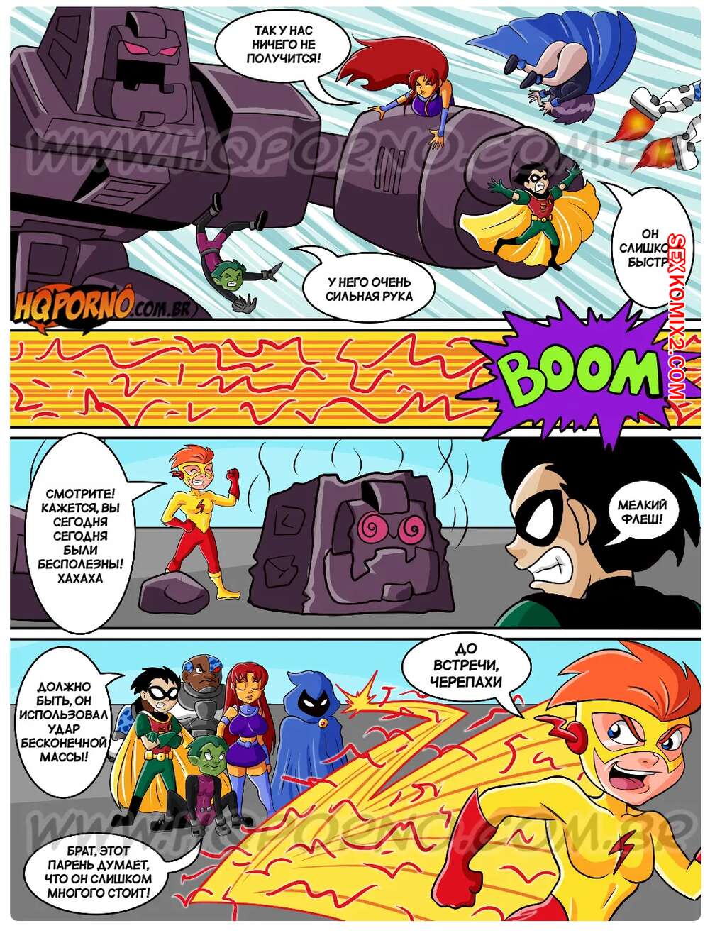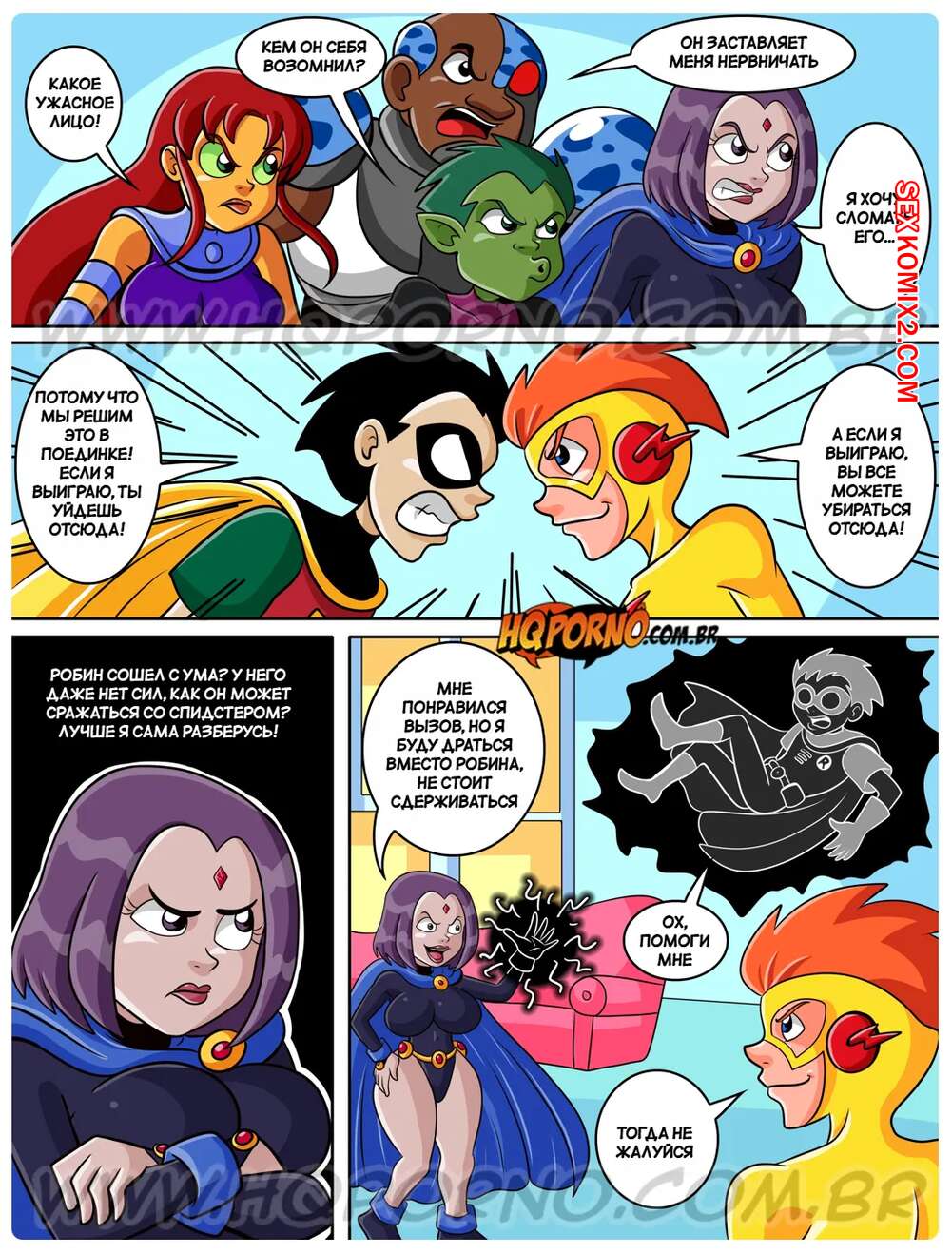 Порно комикс Юные титаны. Часть 6. Jovens Titas. HQporno Во время отдыха на пляже горячая красотка Рейвен решила повеселиться с Кид Флэшем. Красотка разделась и возбудила парня шикарным телом, после чего дала ему выебать свою пизденку.