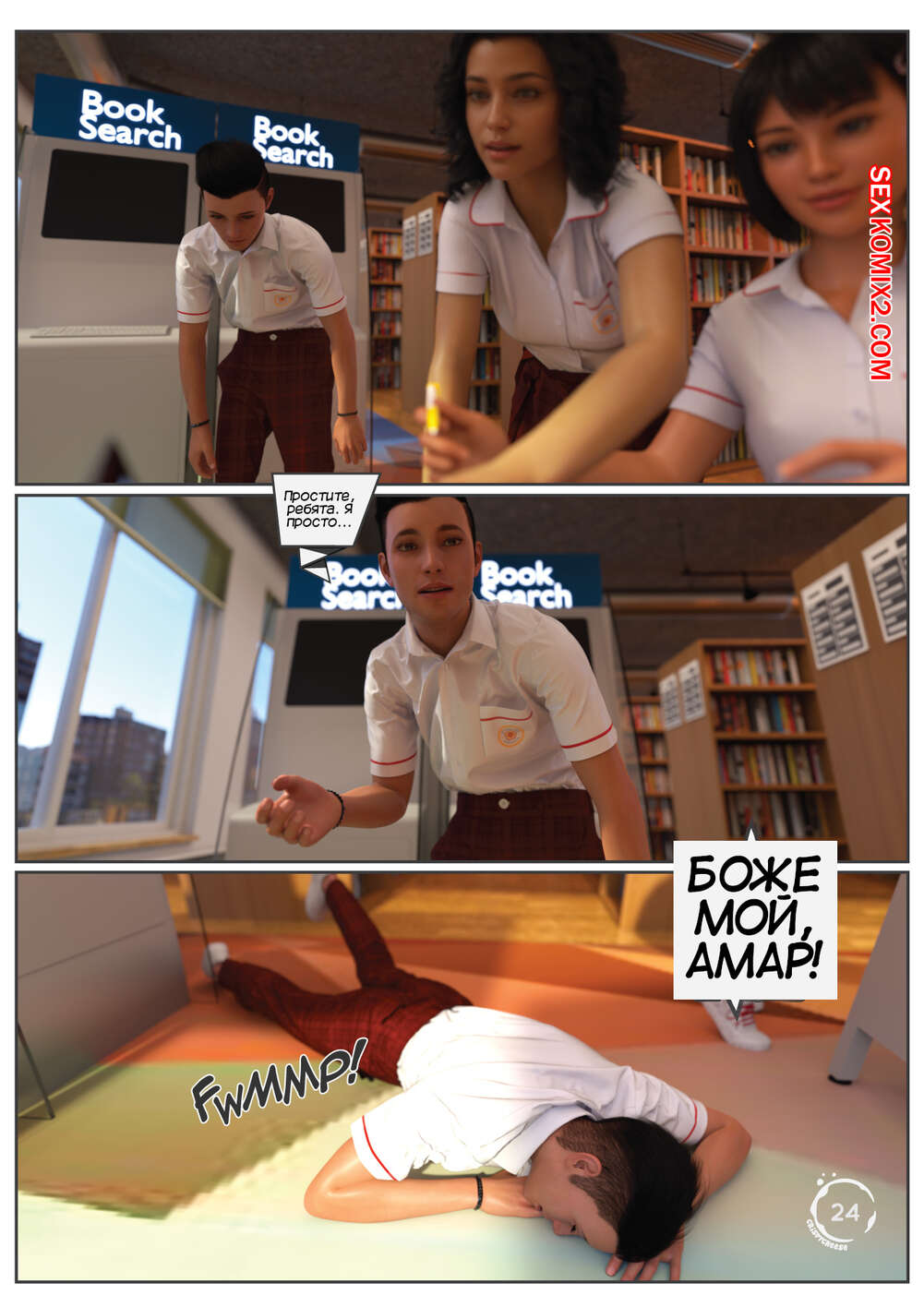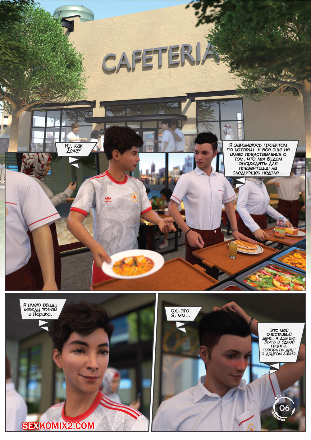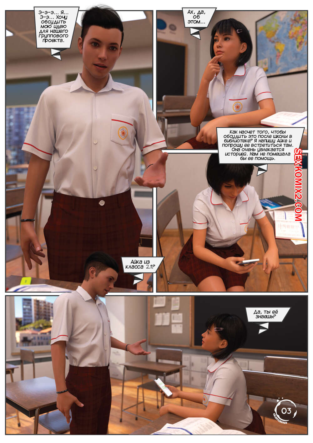 Порно комикс Между слабостью и близостью. Часть 3. Between Affection And Intimacy. Crispy Cheese Амар без ума от Норико и приходит поговорить с девушкой о их проекте по истории. Девушка позвала парня после занятий в библиотеку, а он пошел перекусить с другом, который показал ей коечто интересное.