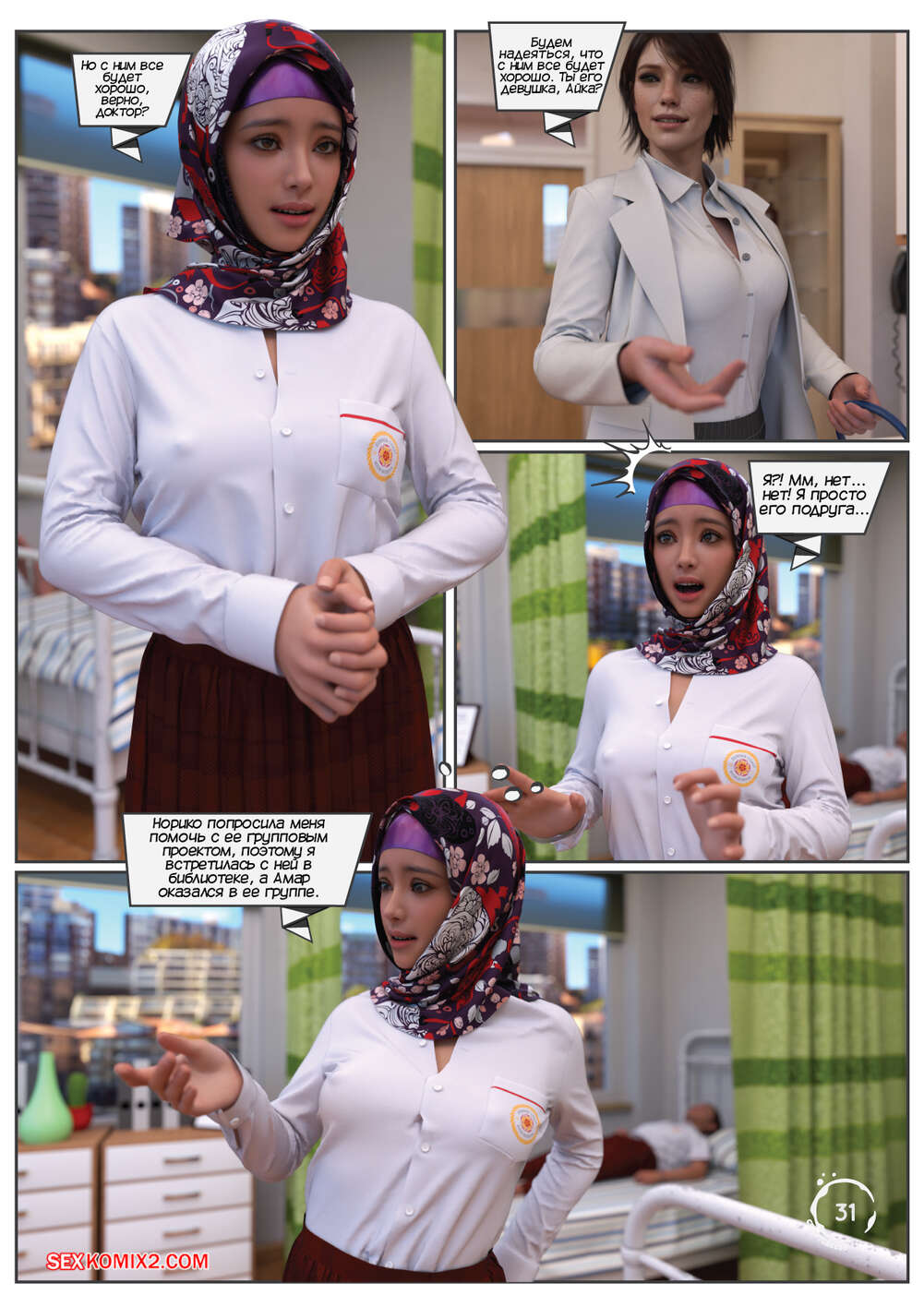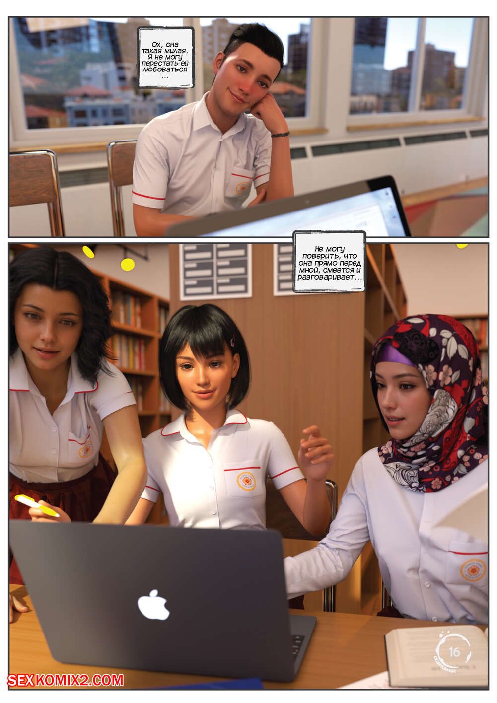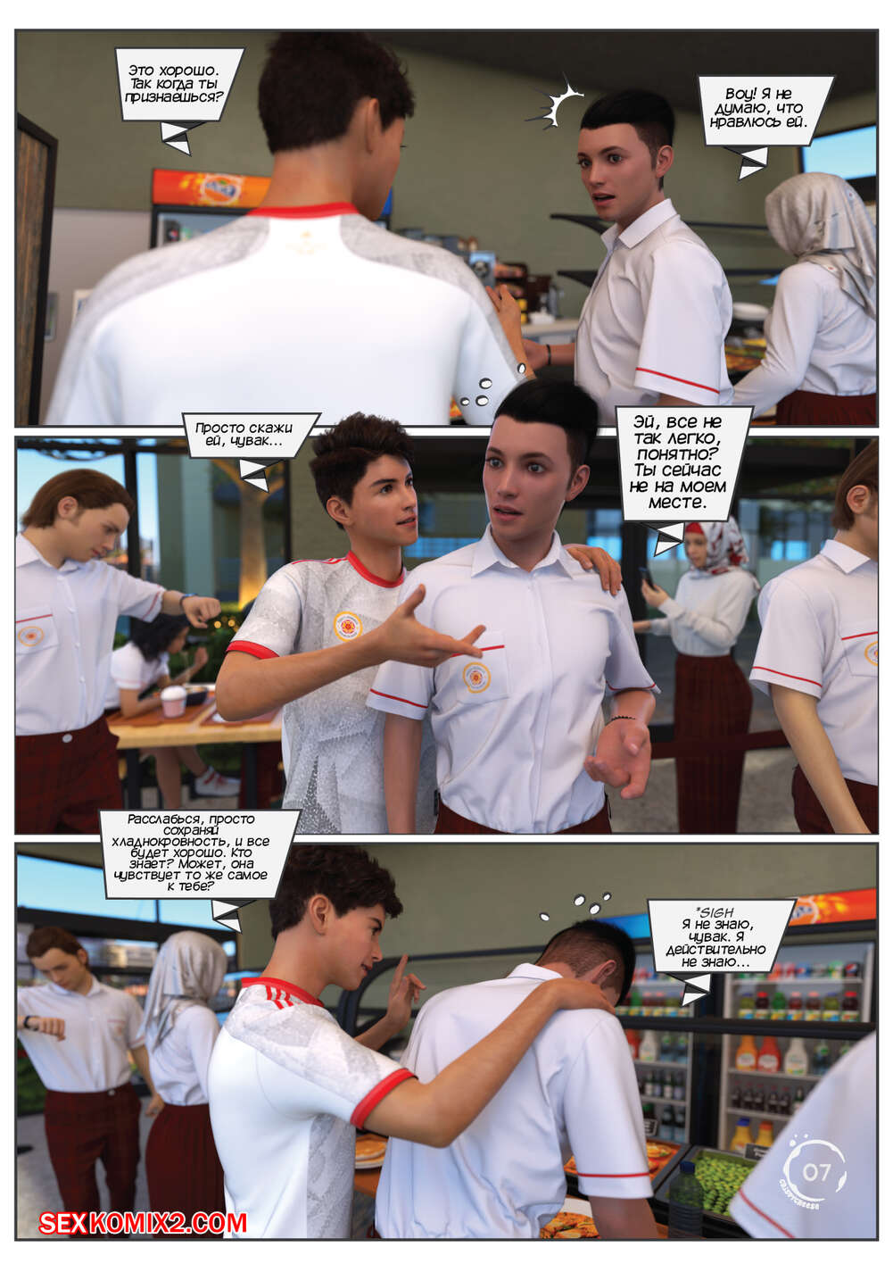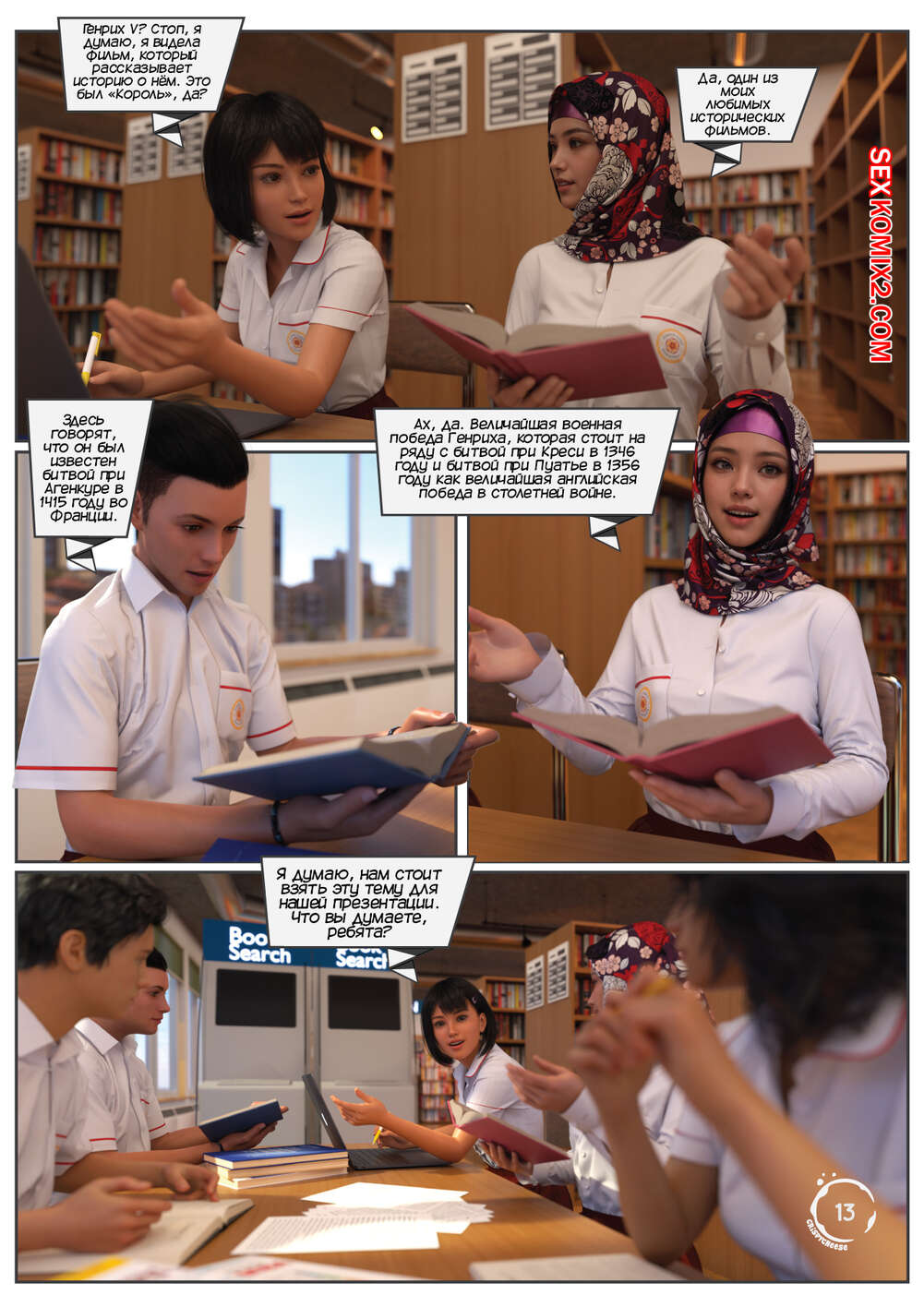 Порно комикс Между слабостью и близостью. Часть 3. Between Affection And Intimacy. Crispy Cheese Амар без ума от Норико и приходит поговорить с девушкой о их проекте по истории. Девушка позвала парня после занятий в библиотеку, а он пошел перекусить с другом, который показал ей коечто интересное.