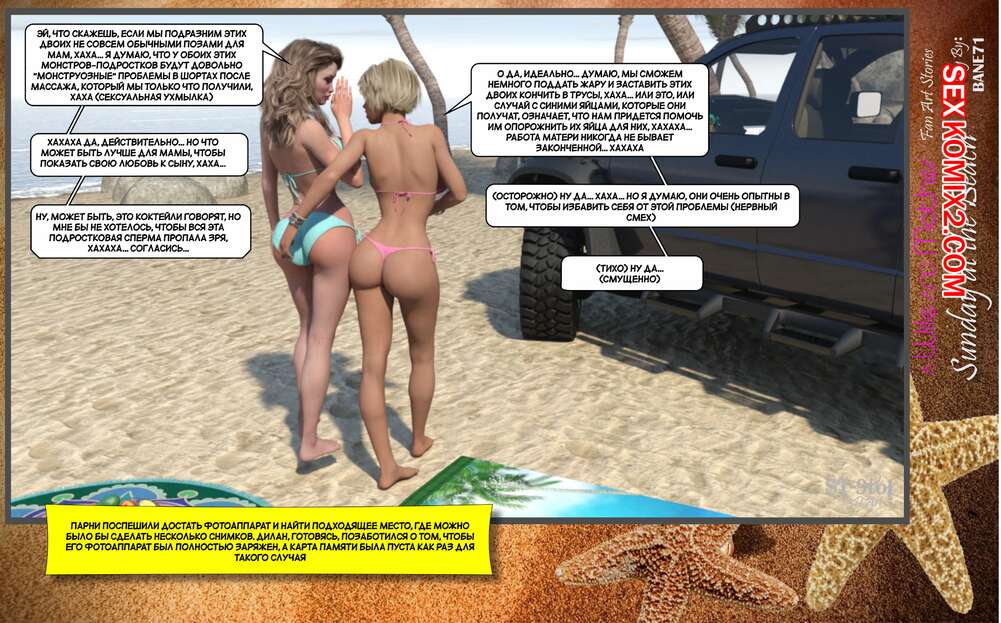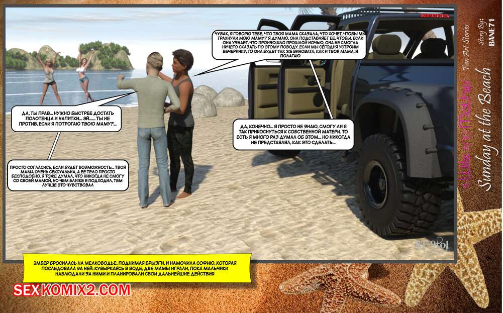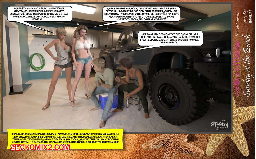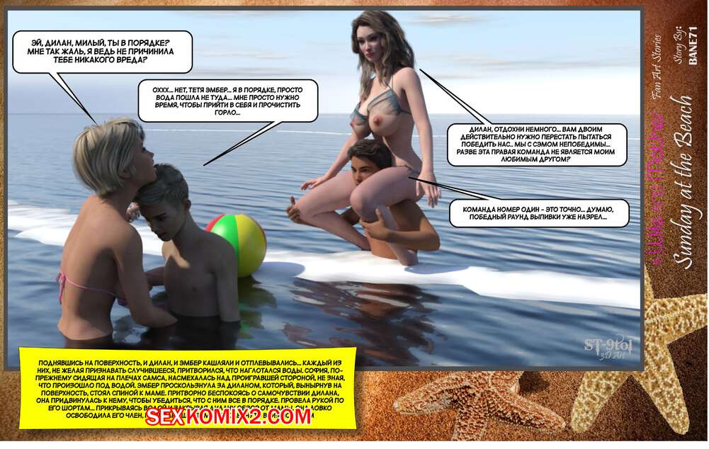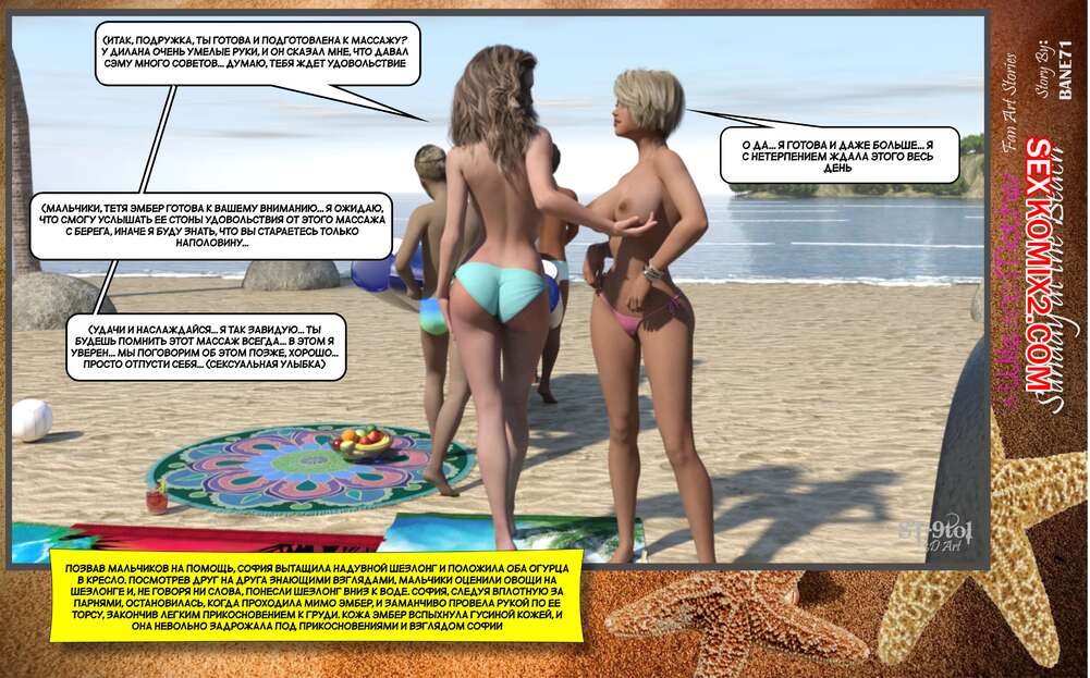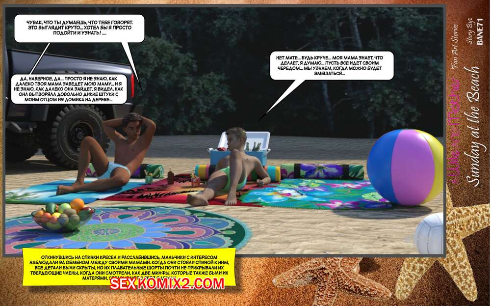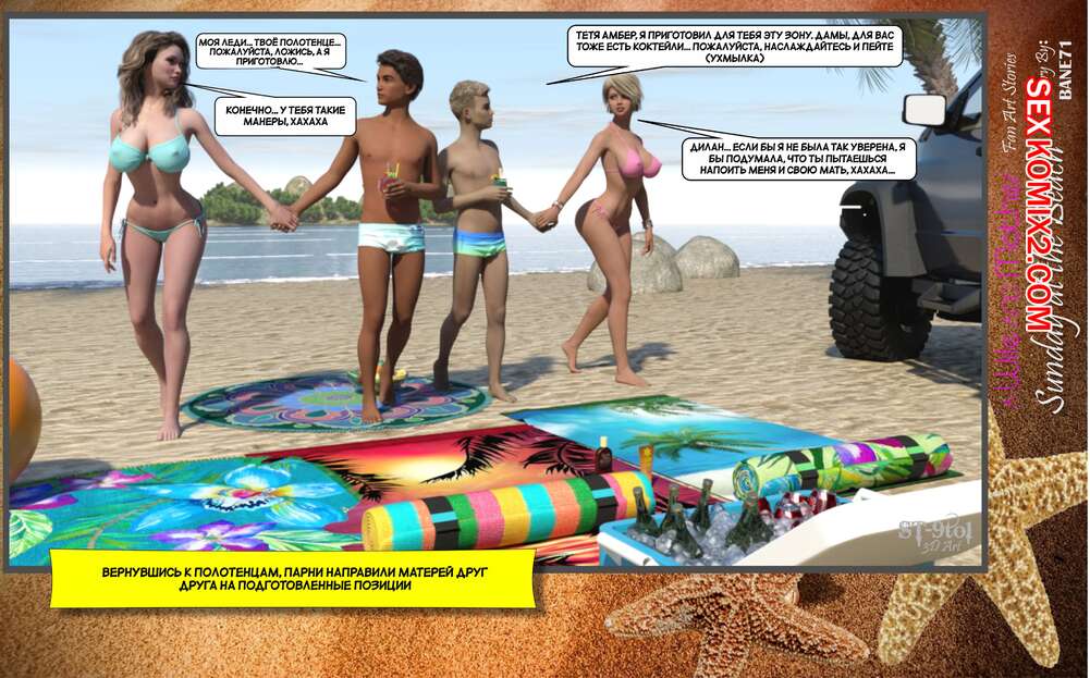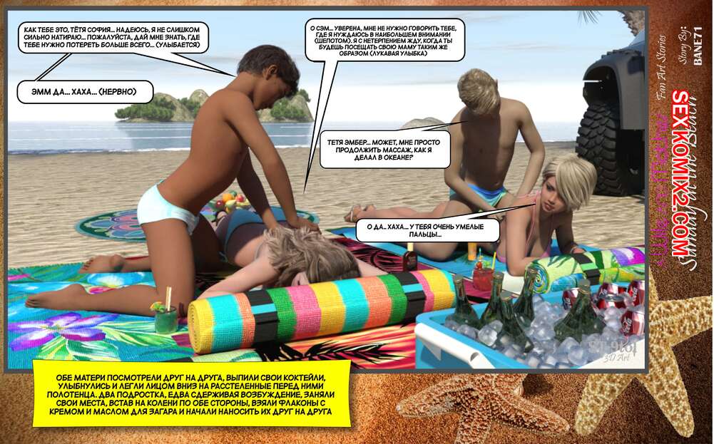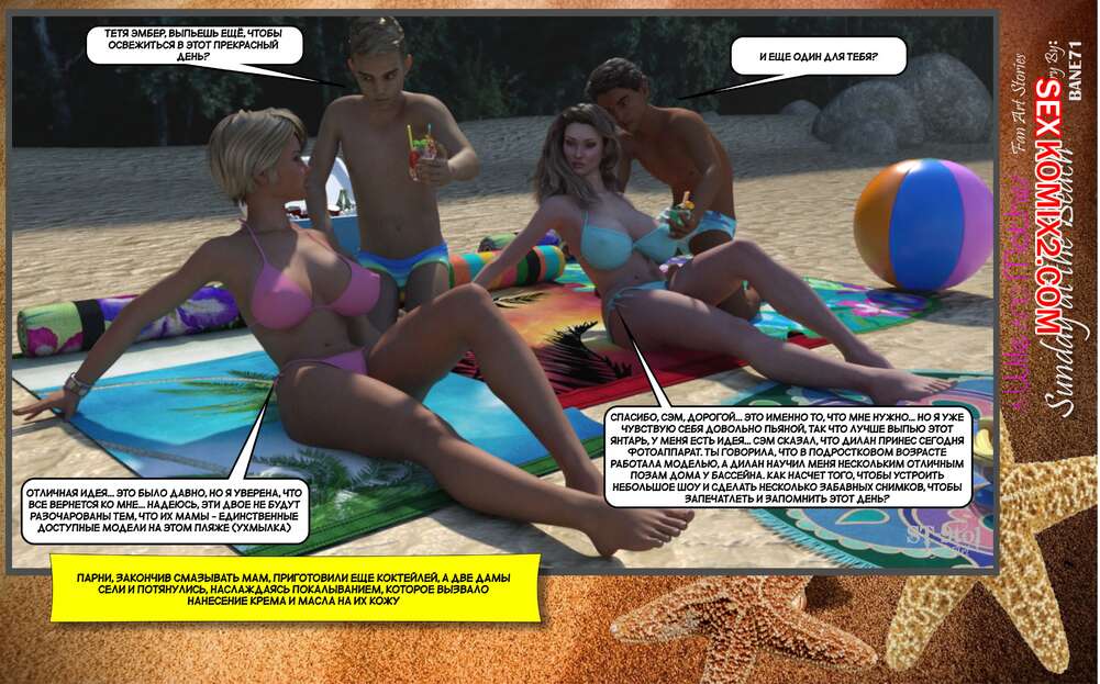 Порно комикс Воскресный день на пляже. Sunday On The Beach. ST9to1 Горячие милфы отправились на пляж с молодыми парнями. Там красотки соблазнили ребят своими шикарными телами, после чего раздвинули ножки и дали им себя хорошенько выебать.