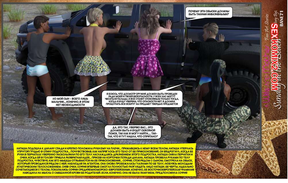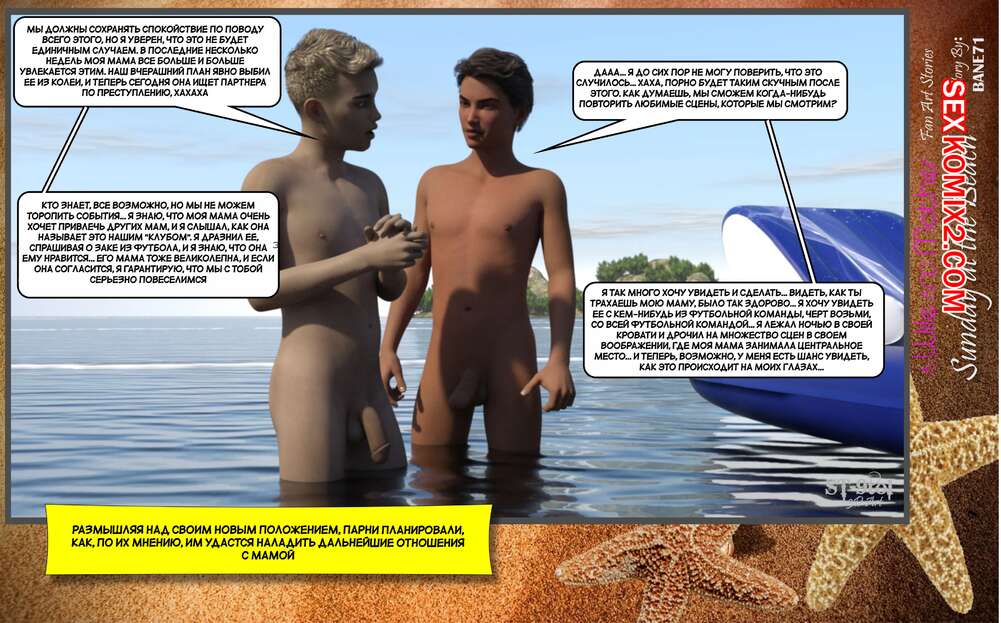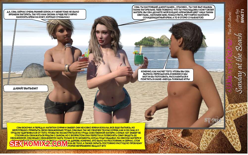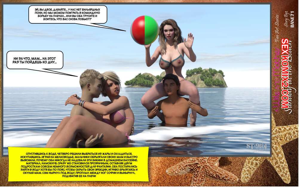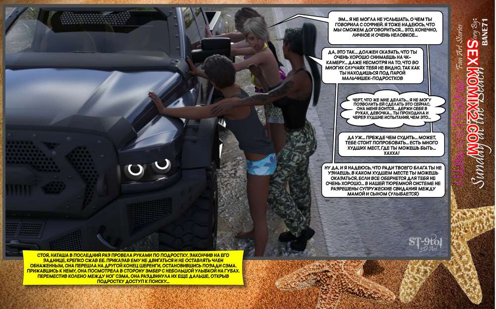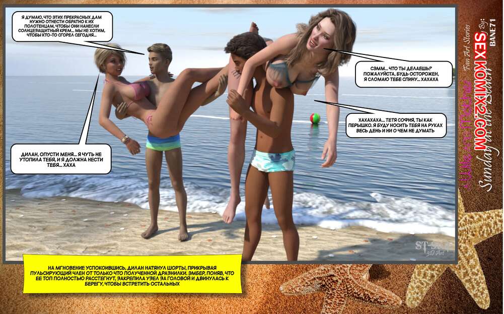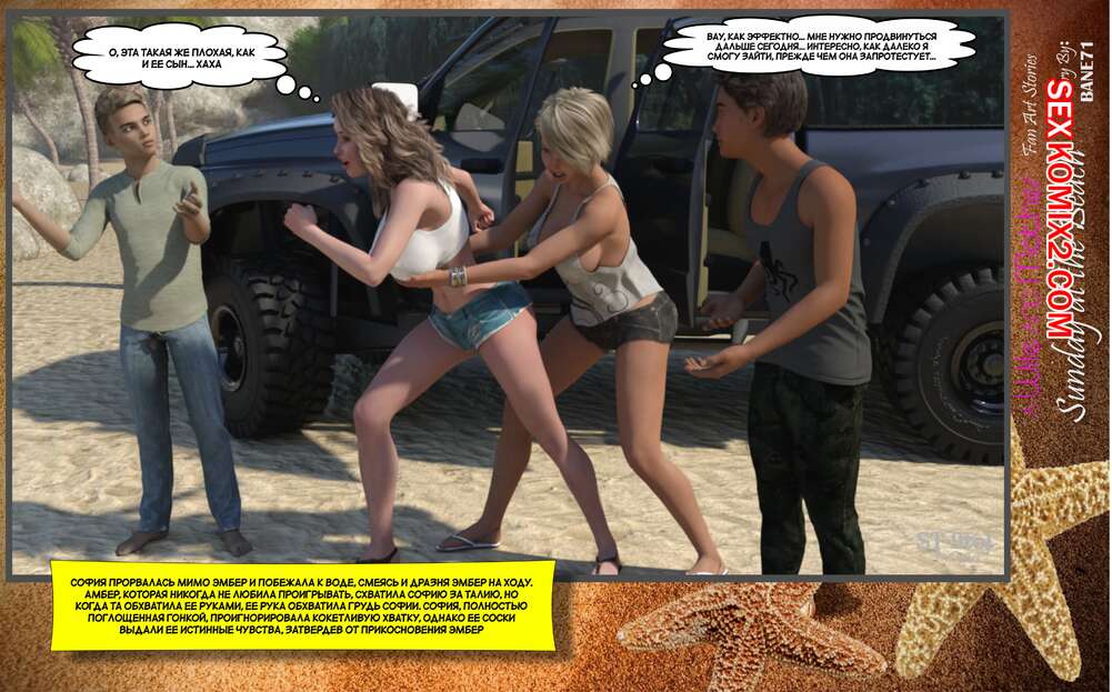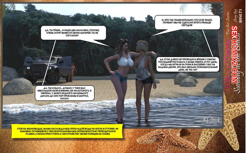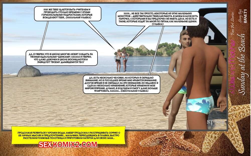 Порно комикс Воскресный день на пляже. Sunday On The Beach. ST9to1 Горячие милфы отправились на пляж с молодыми парнями. Там красотки соблазнили ребят своими шикарными телами, после чего раздвинули ножки и дали им себя хорошенько выебать.