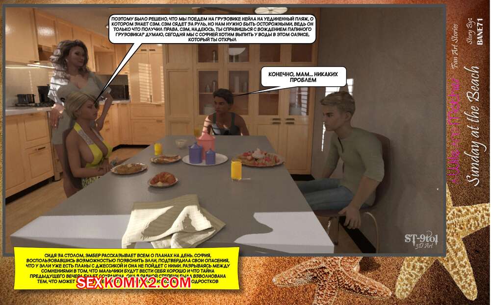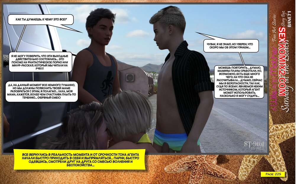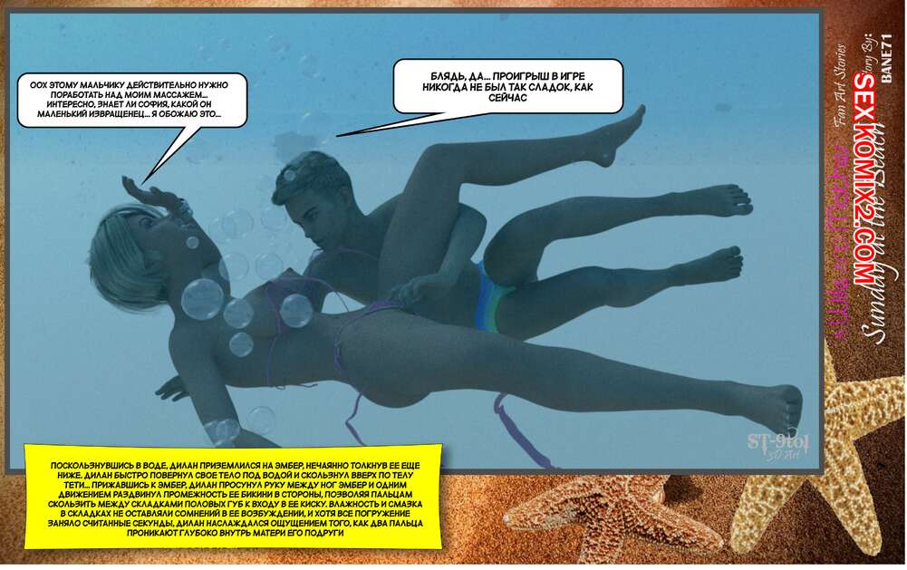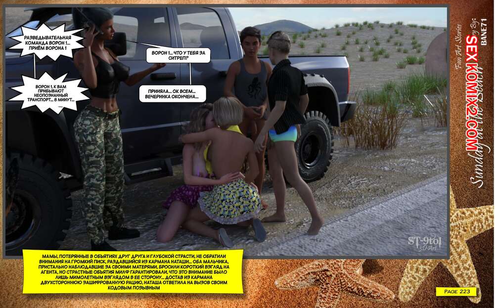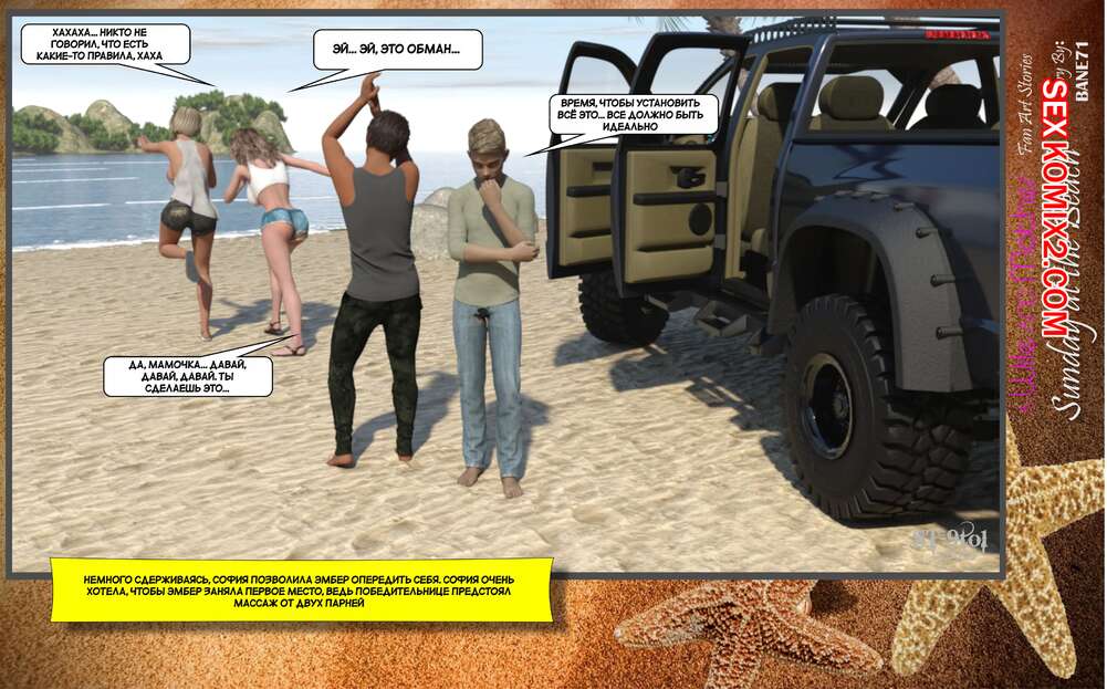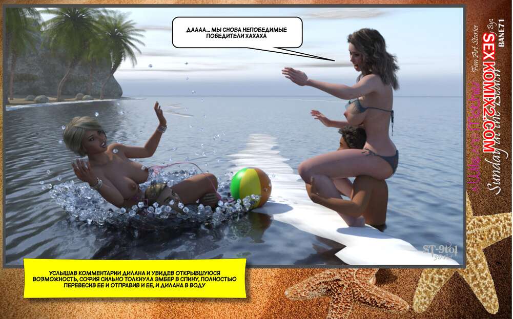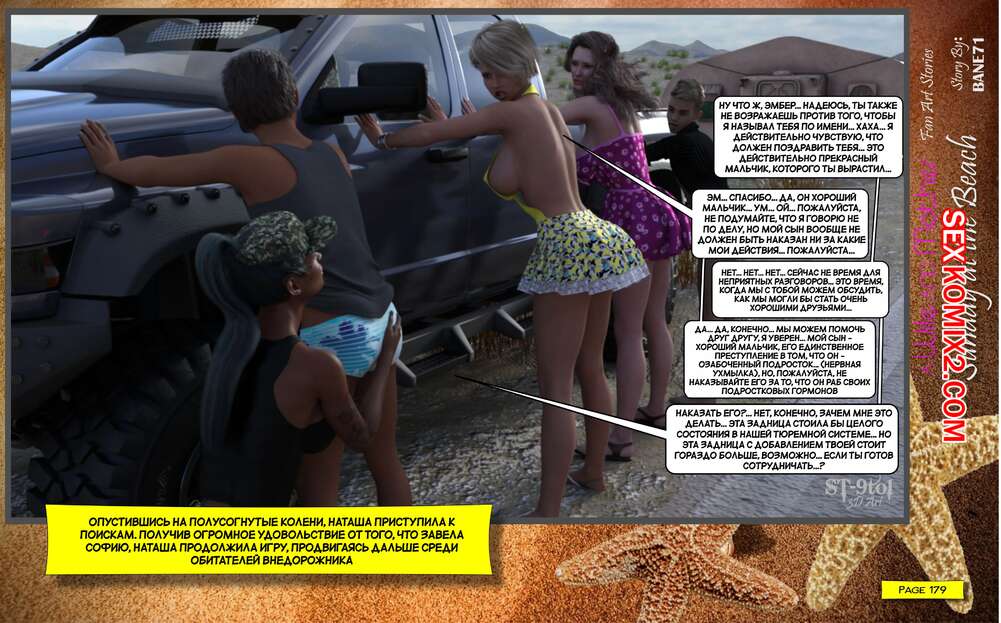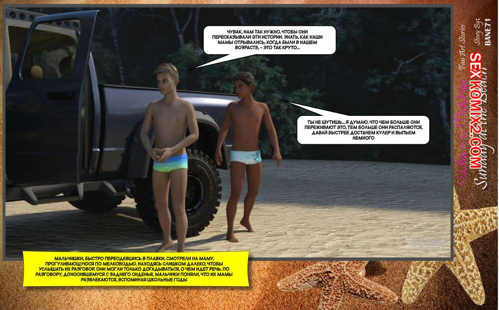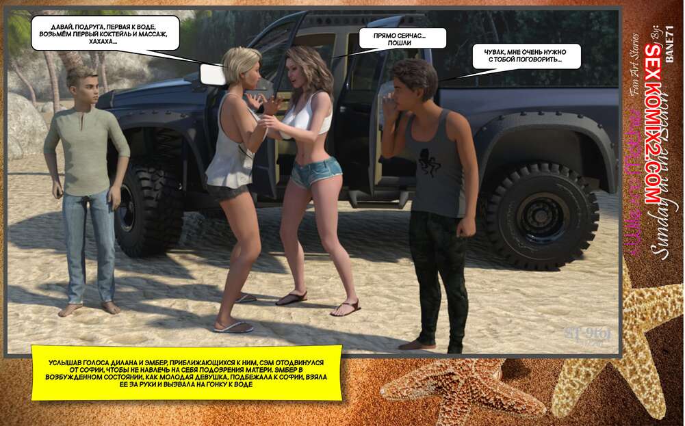 Порно комикс Воскресный день на пляже. Sunday On The Beach. ST9to1 Горячие милфы отправились на пляж с молодыми парнями. Там красотки соблазнили ребят своими шикарными телами, после чего раздвинули ножки и дали им себя хорошенько выебать.