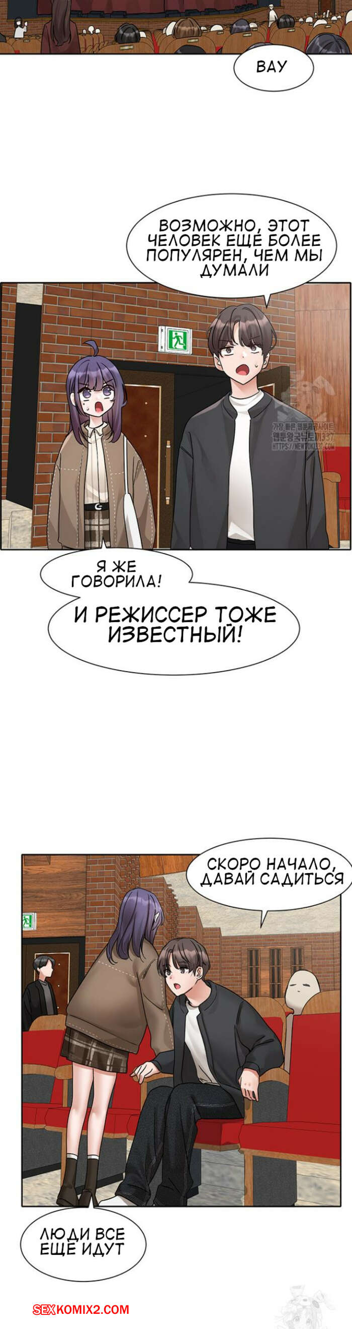 Порно комикс Театральный клуб. Часть 168. Circles. Theater cociety Горячая брюнетка встретилась со своим дружком. Красотка поразила парня сексуальным телом в красивом наряде и пригласила его отправиться к ней домой, чтобы заняться сексом.