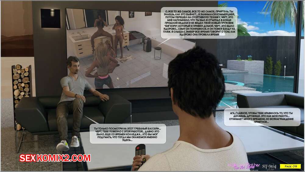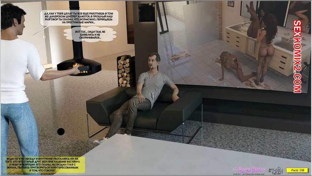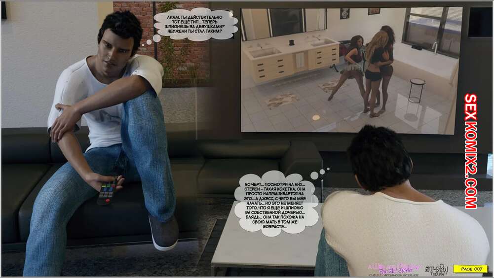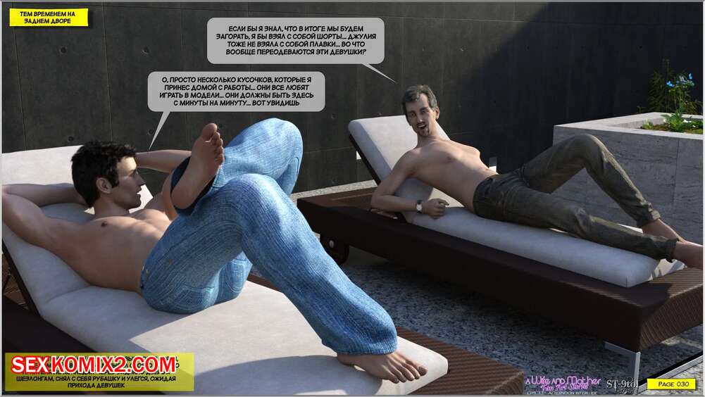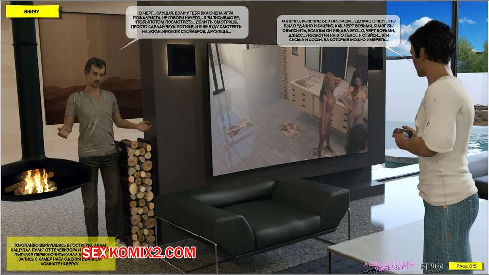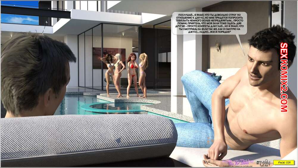 Порно комикс Интерлюдия после полудня. Afternoon Interlude. ST9to1 Горячие подруги отправились в ванну, чтобы переодеться для купания в бассейне. Красотки переоделись и стали страстно целоваться, пока их дружки наблюдали за ними через скрытую камеру.