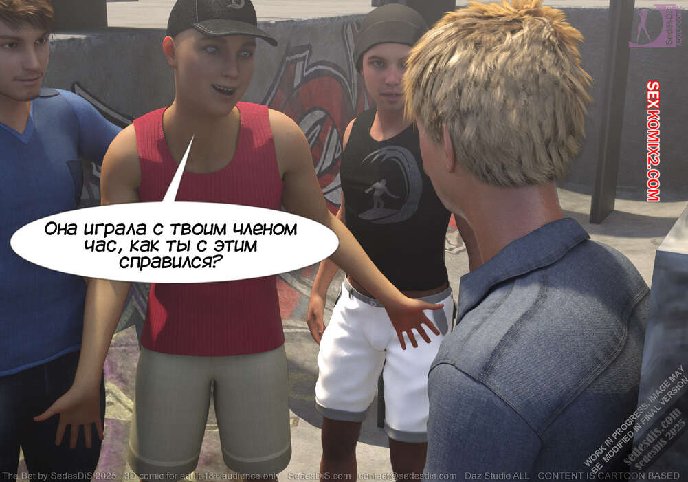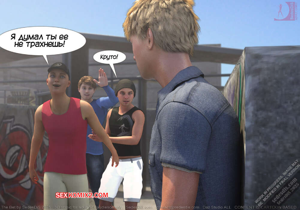 Порно комикс Ставка. The Bet. SedesDiS Горячая блондинка пришла на спортивную площадку, чтобы покататься на скейте. Там она застала своего дружка Питер без настроения и решила выяснить что у него случилось.