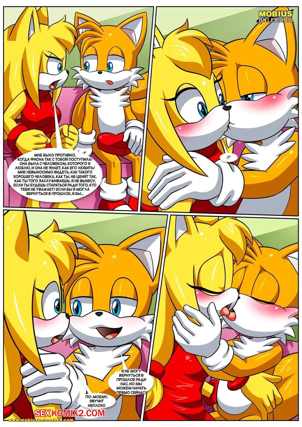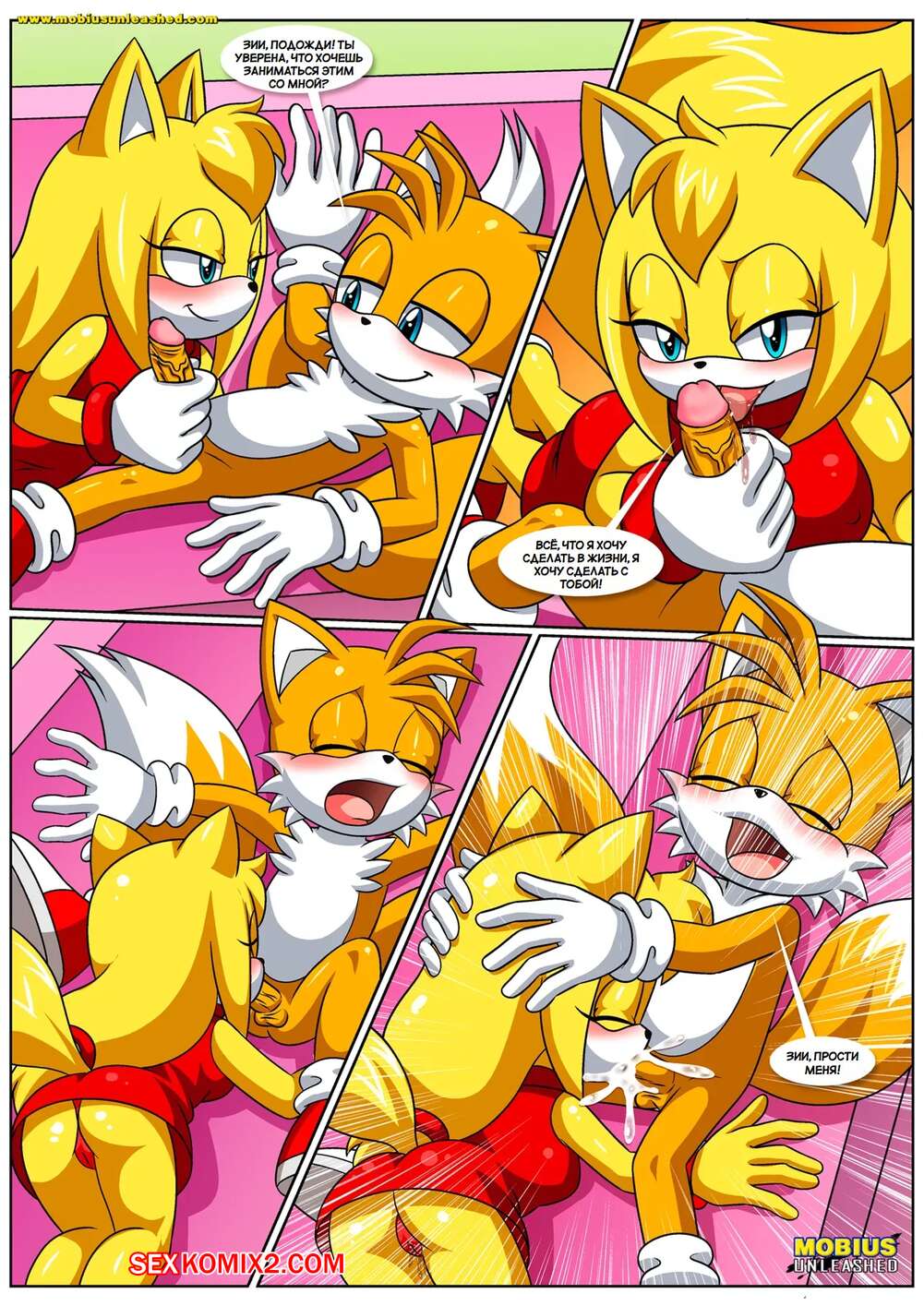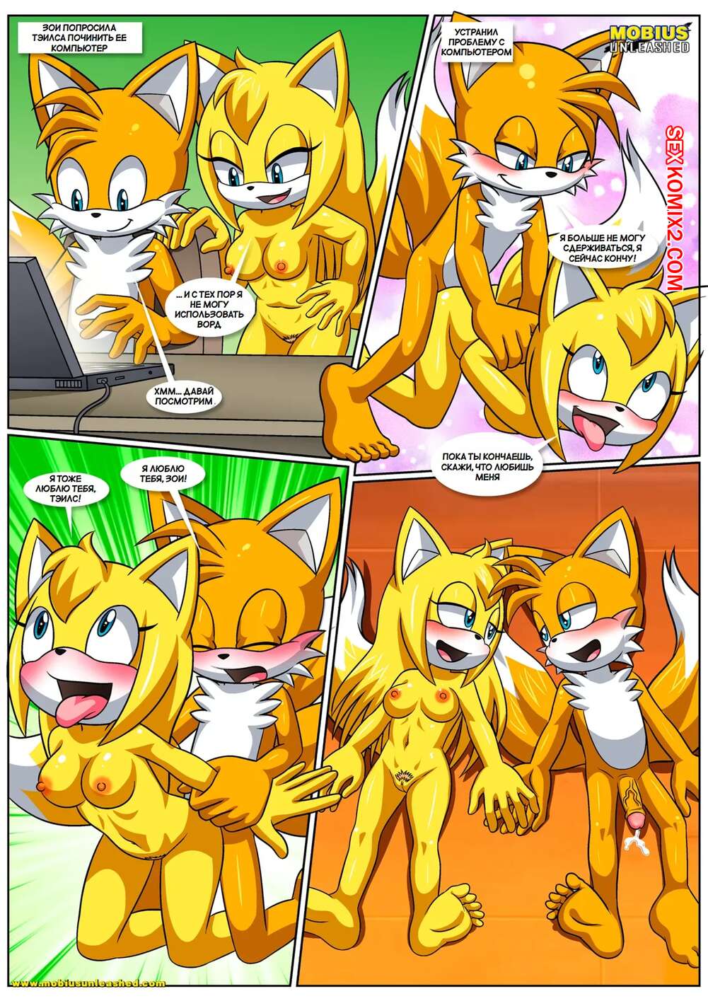Порно комикс Соник. Позволь мне любить тебя. Let Me Love You. Palcomix. Тейлз пришел к своей подруге и она решила повеселиться с парнем. Красотка отвела друга в спальню и отсосала его большой хуй, после чего дала ему выебать свою пизденку.